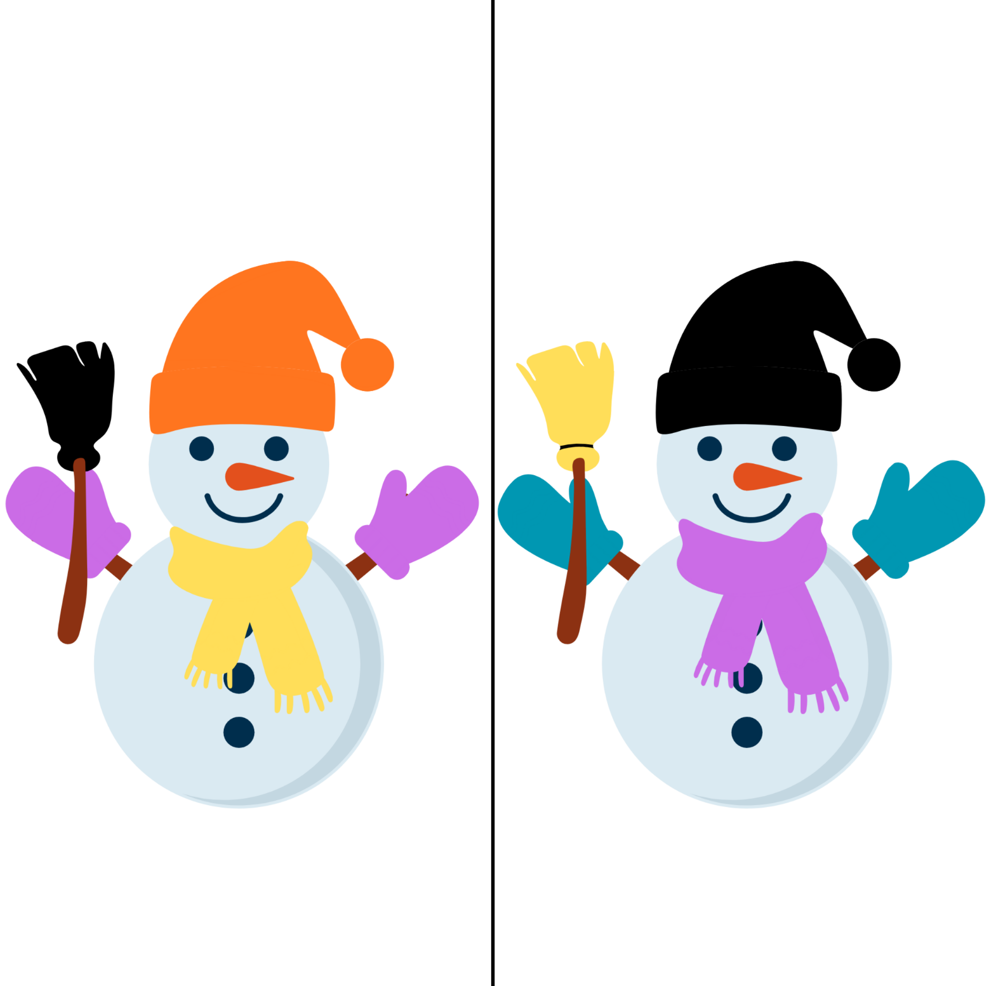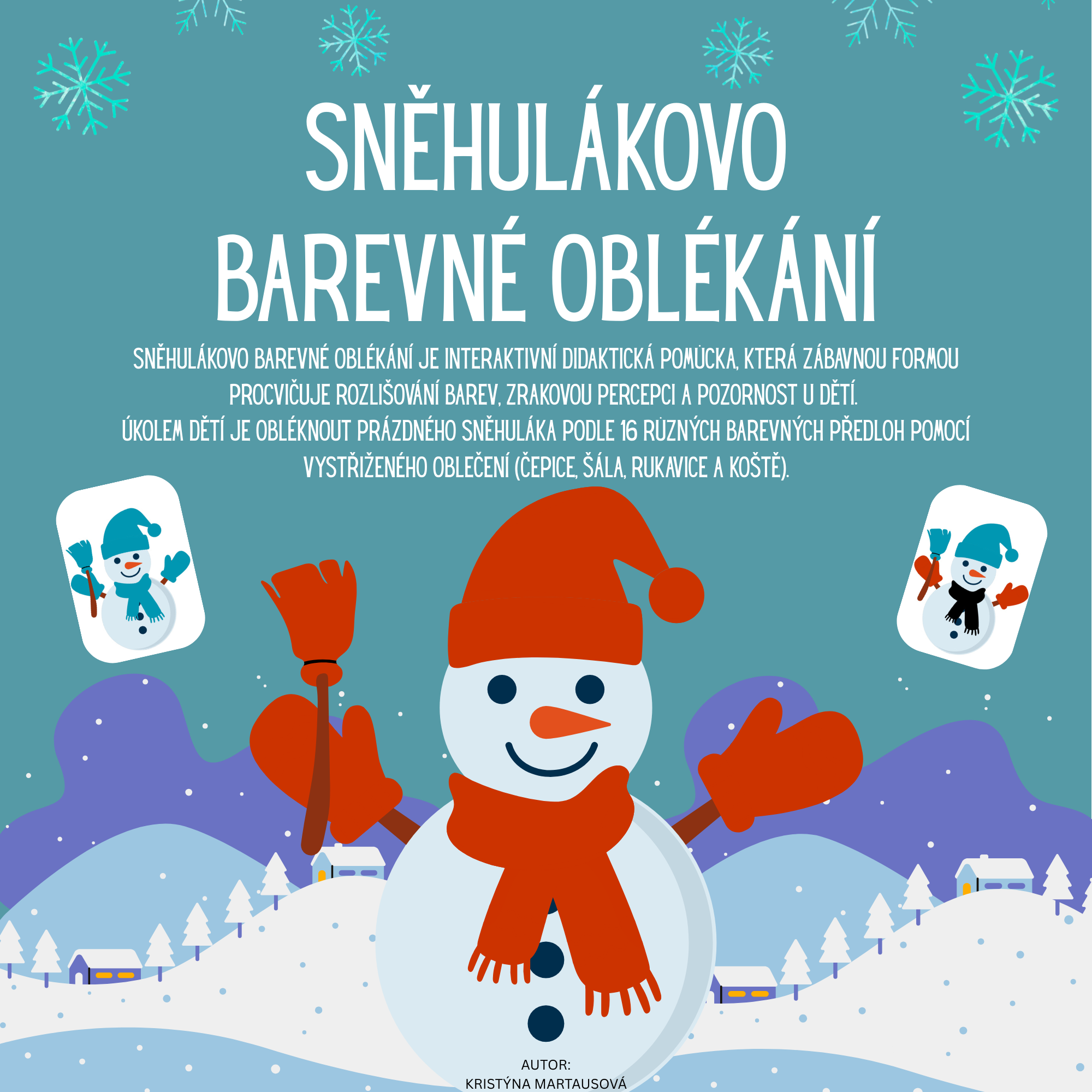Zábavná interaktivní aktivita, při které děti oblékají prázdného sněhuláka. Jejich úkolem je sladit 5 částí oblečení (čepice, šála, rukavice a koště) podle 16 různých barevných předloh.