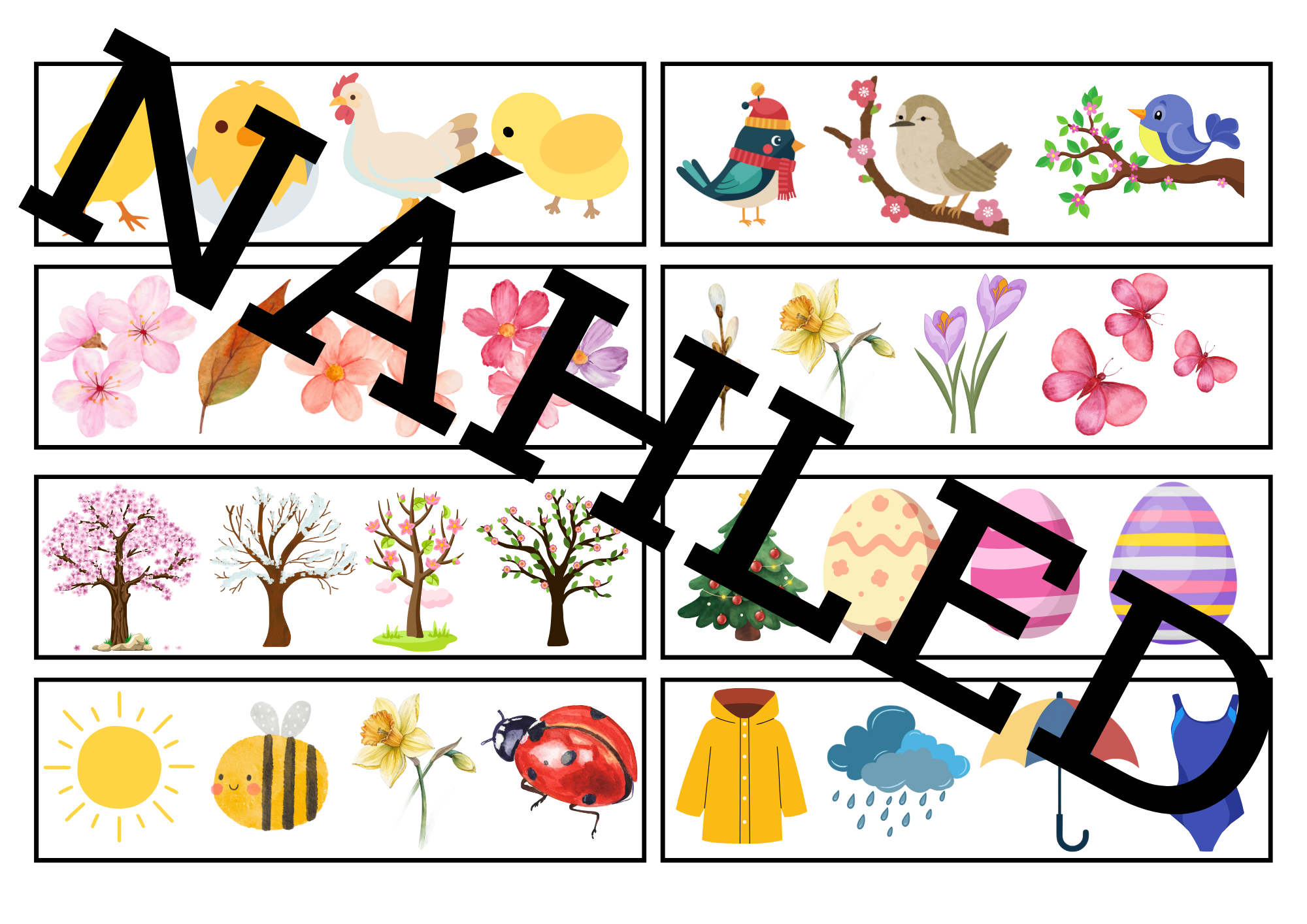 Přiřaď obrázky podle barev, Dokreslovánky 3x, Jarní hledačka, Jarní pracovní list, Co zde nepatří? - kolíčkování