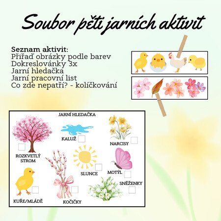 Tento jarní soubor s pěti aktivitami je vhodný pro děti MŠ.