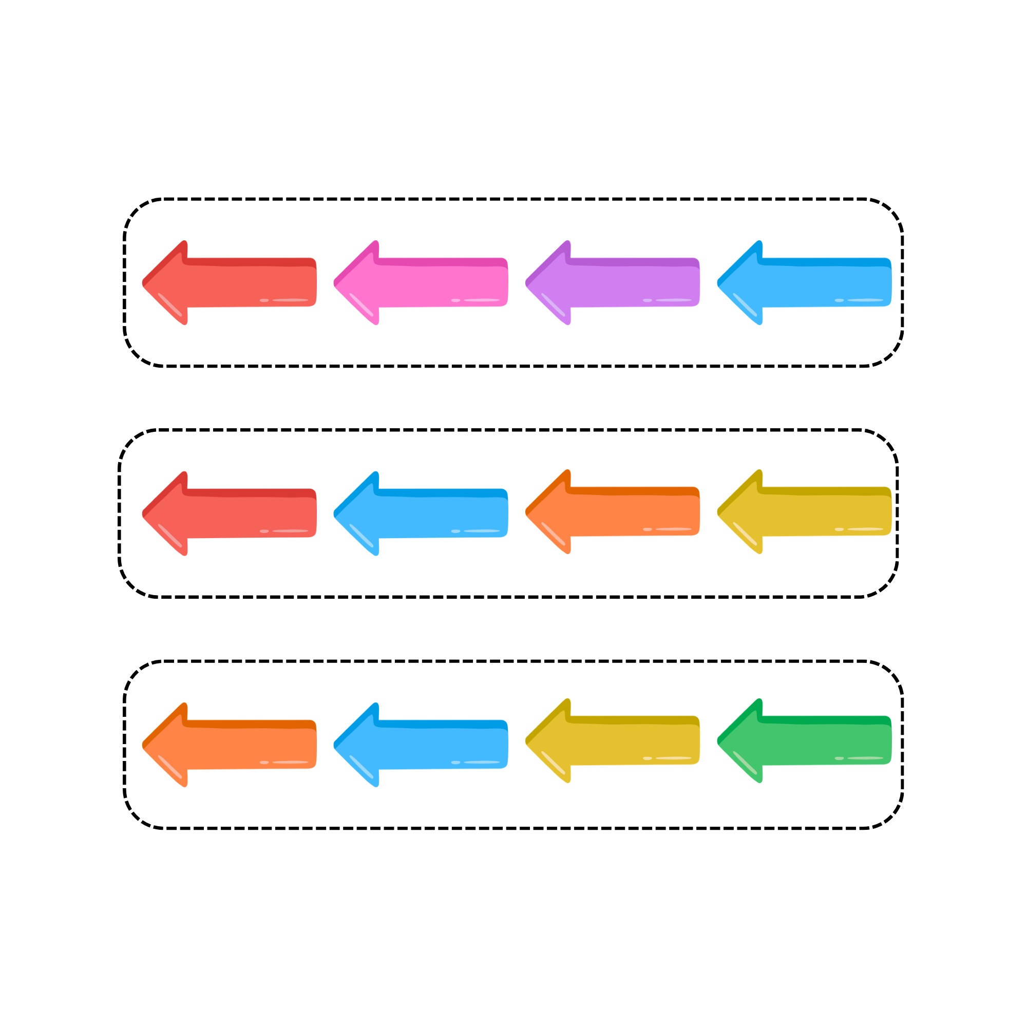 - 12 předloh se šipkami (různé kombinace barev a směrů).