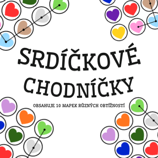 Děti se pohybují po srdíčkách podle „mapy“ – sledují vyznačenou trasu.