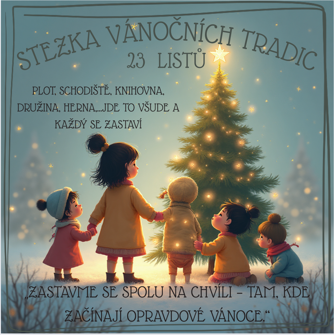 Na každém zastavení najdete krátký příběh o jedné vánoční tradici, obrázek pro představivost a otázku, která otevírá rozhovor – mezi dětmi, rodiči, prarodiči i přáteli.