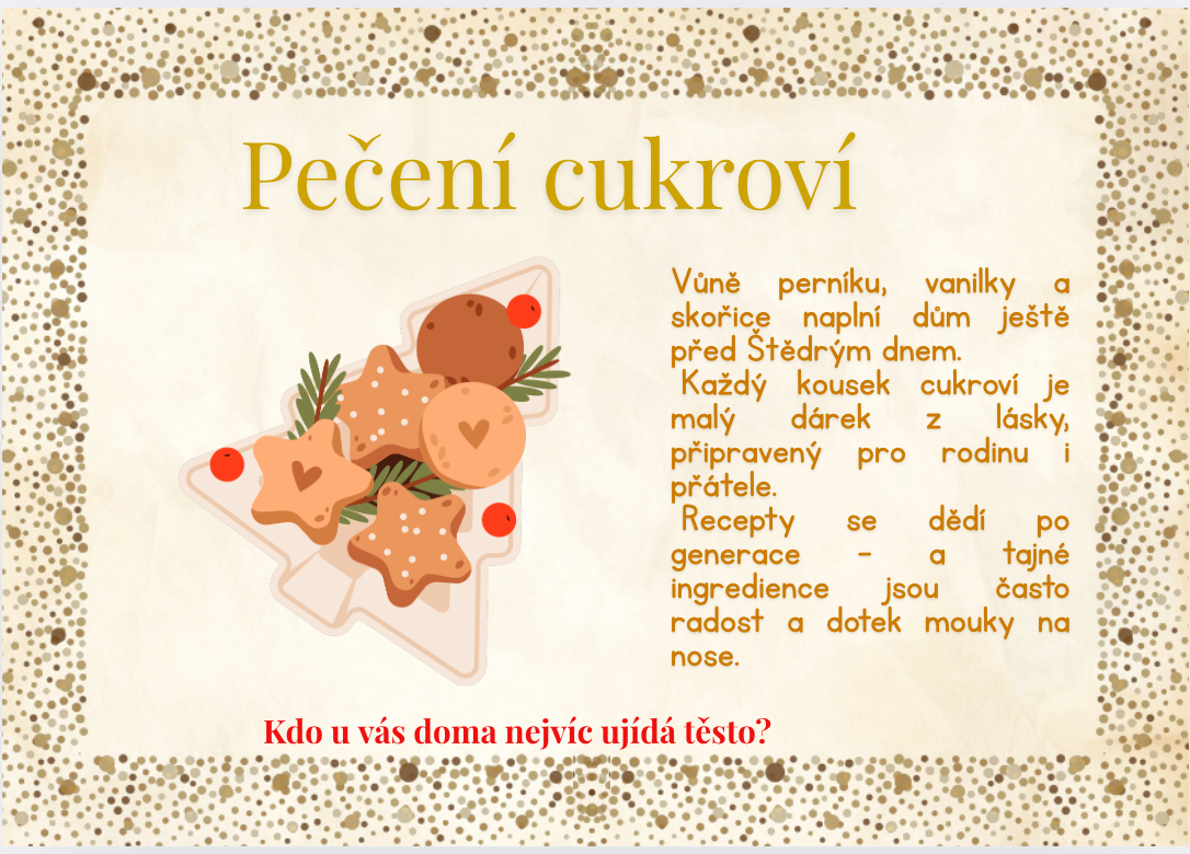 💫 Projekt: Vánoční tradice – 23 zastavení plných světla, vůní a příběhů.