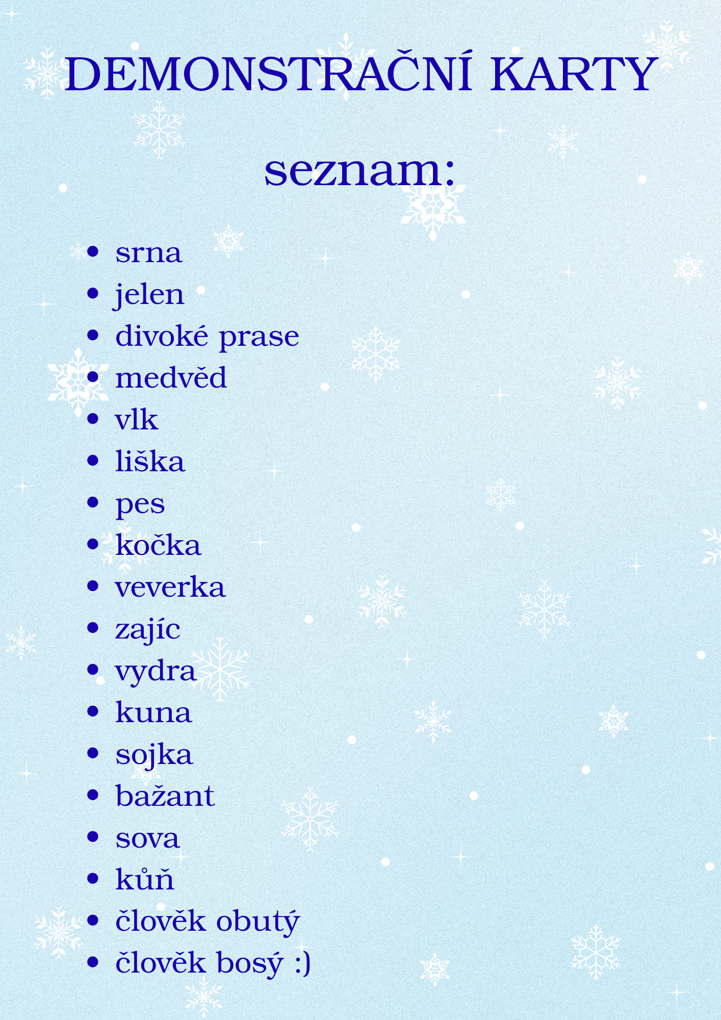 Soubor materiálů pro téma 🐾❄️Stopy ve sněhu🐾❄️Soubor obsahuje: průvodní list18 demonstračních karet5 aktivitpopisy způsobu využití aktivit