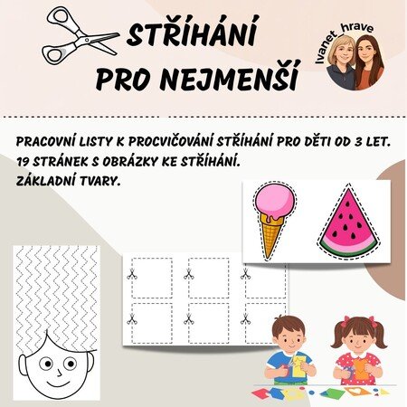 Materiál je ideální pro školky, první třídy i domácí procvičování. Stačí vzít nůžky do ruky a dobrodružství může začít ✨