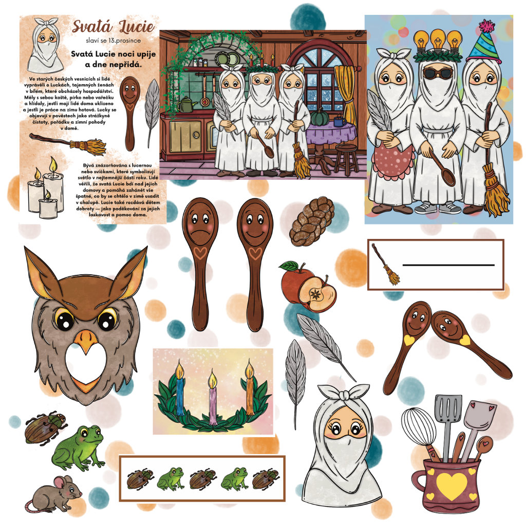 Objevte jedinečný tematický soubor aktivit zaměřený na tradici svaté Lucie a postavy Lucek. Materiál je vytvořený pro mateřské školy a nabízí bohaté propojení kulturních zvyků, smyslového učení, logických úkolů, pohybových her i předčtenářských dovedností. Vše doprovází krásné ilustrace a jasně popsané metodické postupy pro pedagogy.