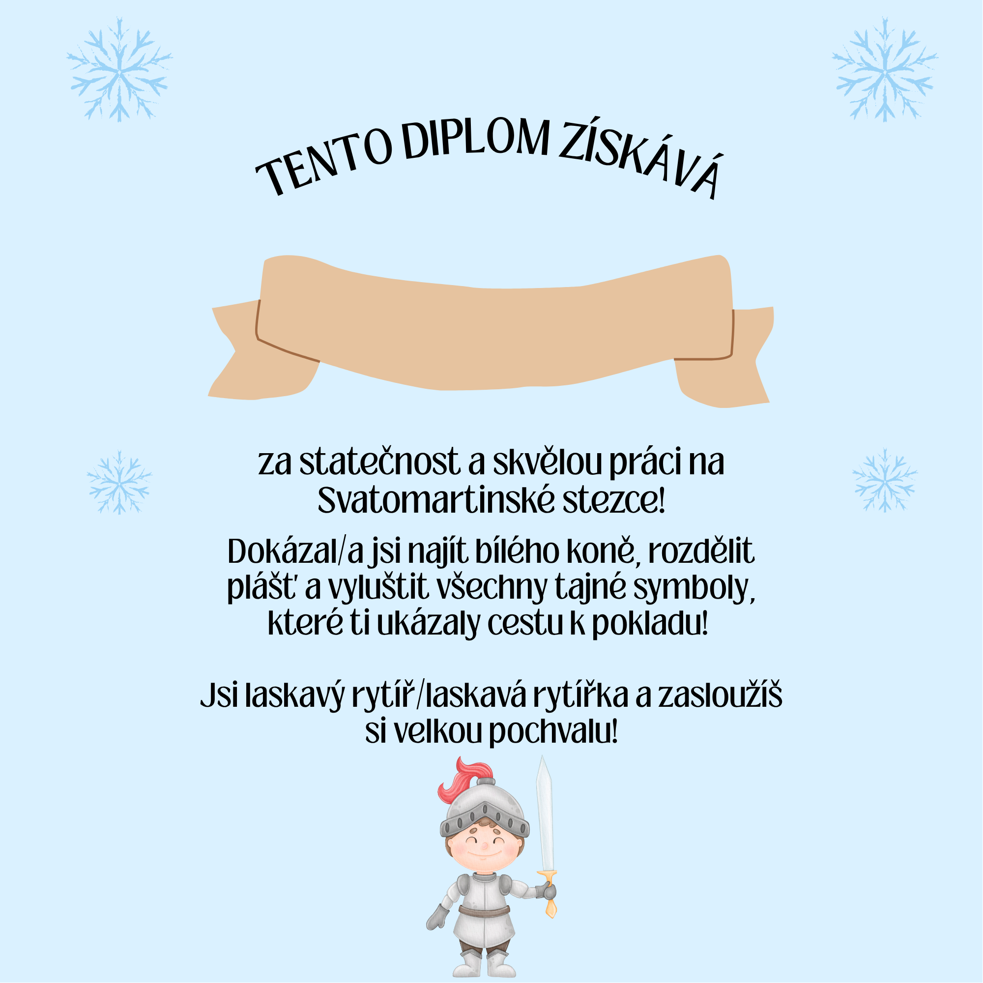- Cíl: Splnit všech 10 Martinových výzev! Za úspěšné dokončení stezky čeká na děti zasloužená odměna (např. diplom nebo rohlíček)!