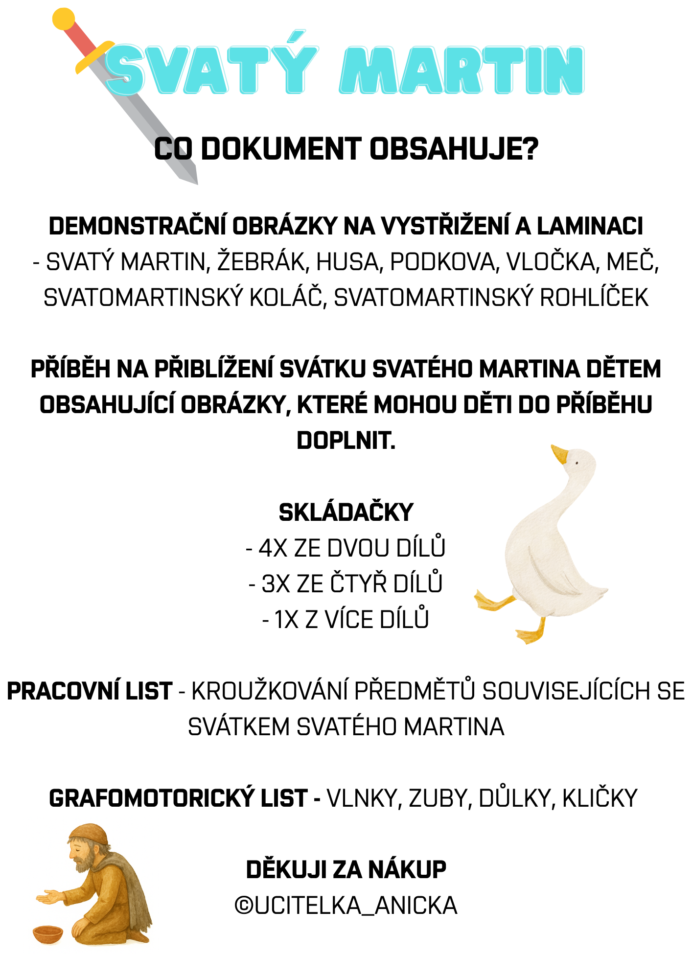 - DEMONSTRAČNÍ OBRÁZKY NA VYSTŘIŽENÍ A LAMINACI - SVATÝ MARTIN, ŽEBRÁK, HUSA, PODKOVA, VLOČKA, MEČ, SVATOMARTINSKÝ KOLÁČ, SVATOMARTINSKÝ ROHLÍČEK