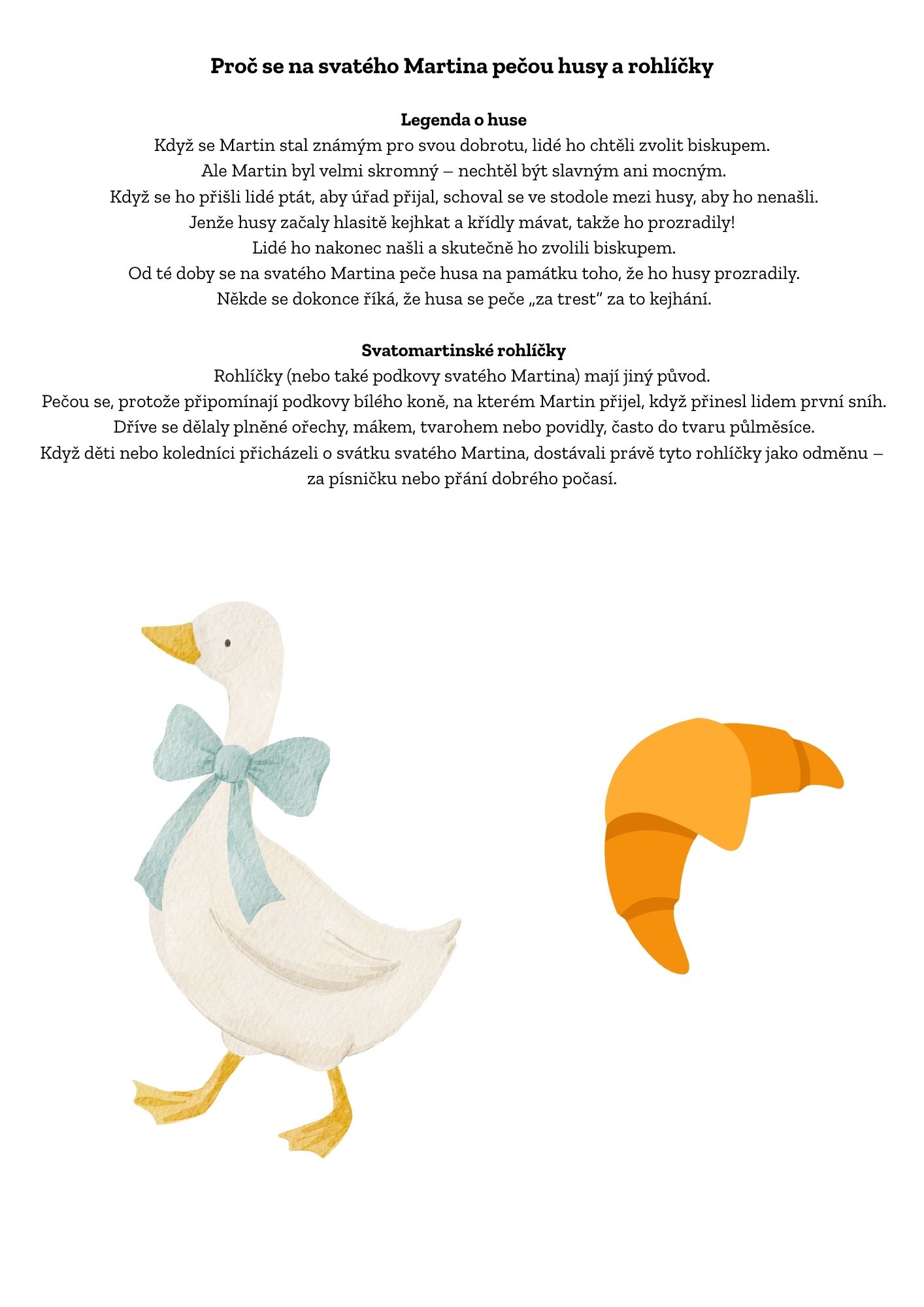Děti se seznámí s legendou o sv. Martinovi, pochopí její význam a procvičí čtení s porozuměním, psaní i tvořivost.