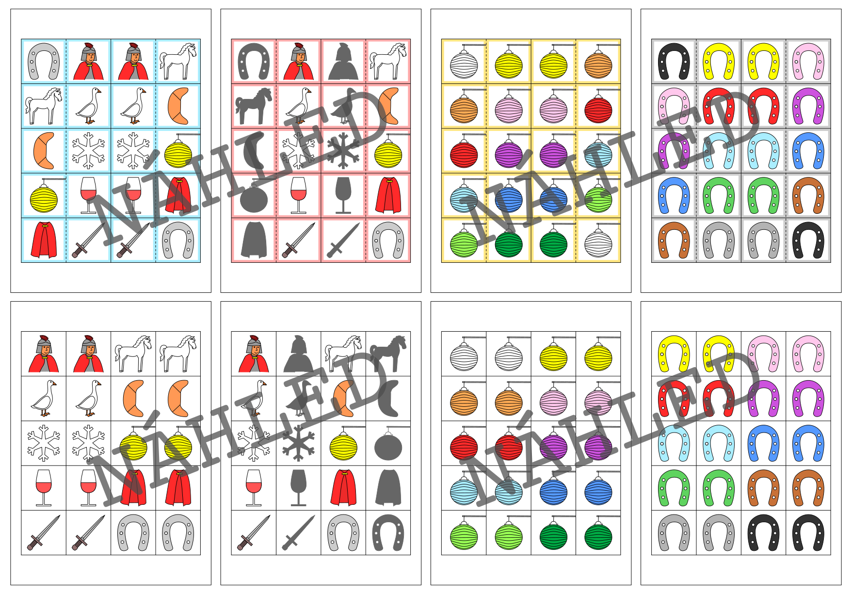 DOMINO: Úkolem je najít a přiložit k sobě stejné obrázky (obrázek a jeho stín) tak, aby vznikl souvislý řetěz/had. Hru lze začít kteroukoli kartičkou.