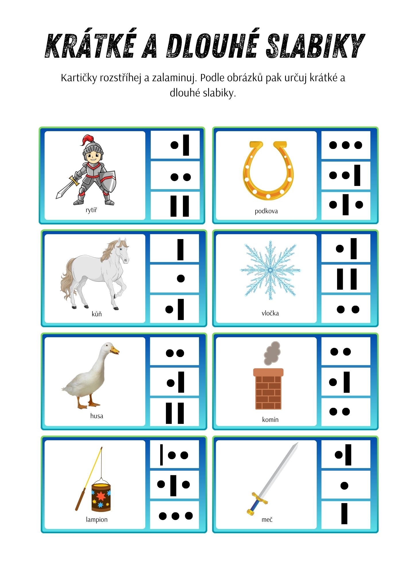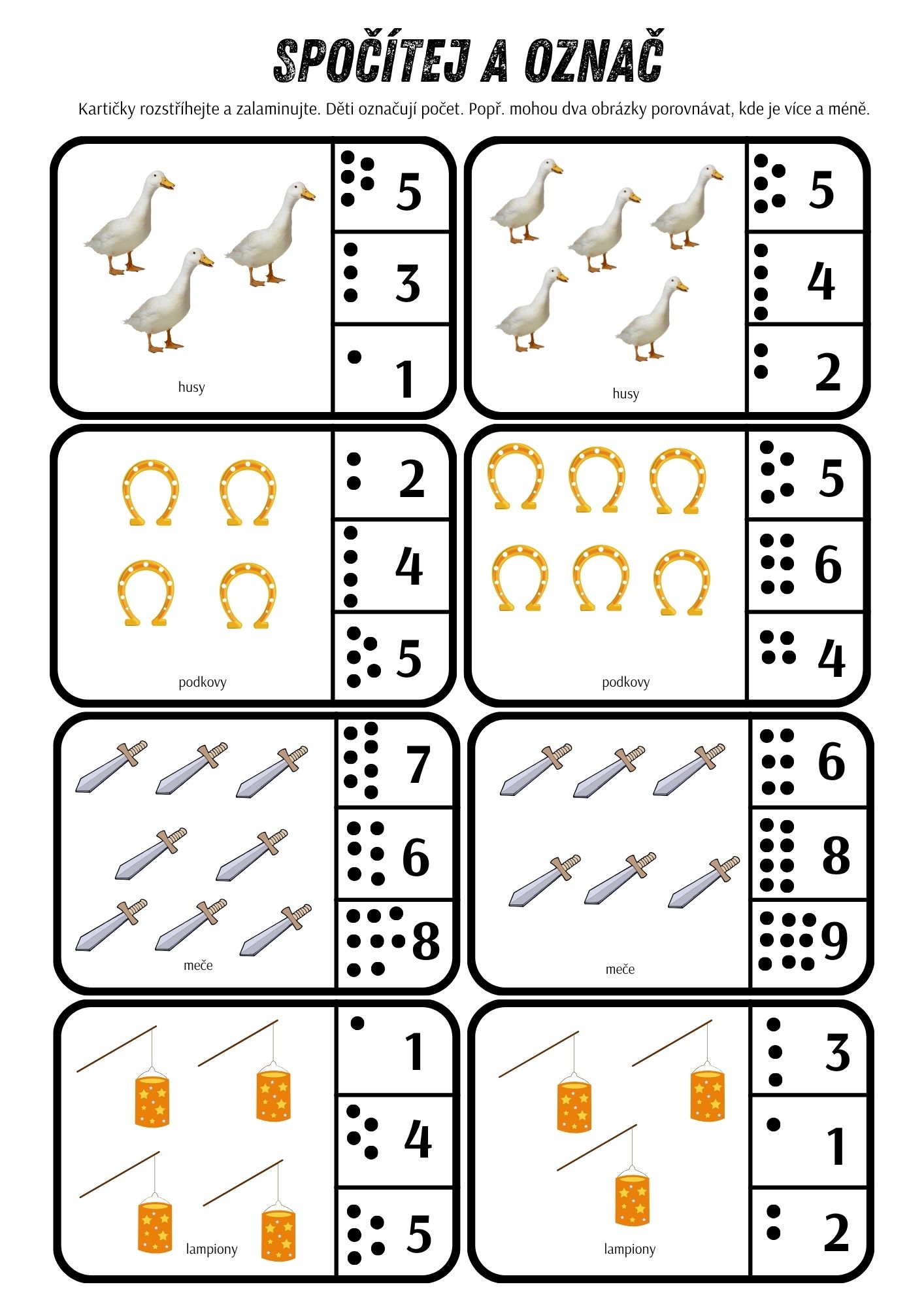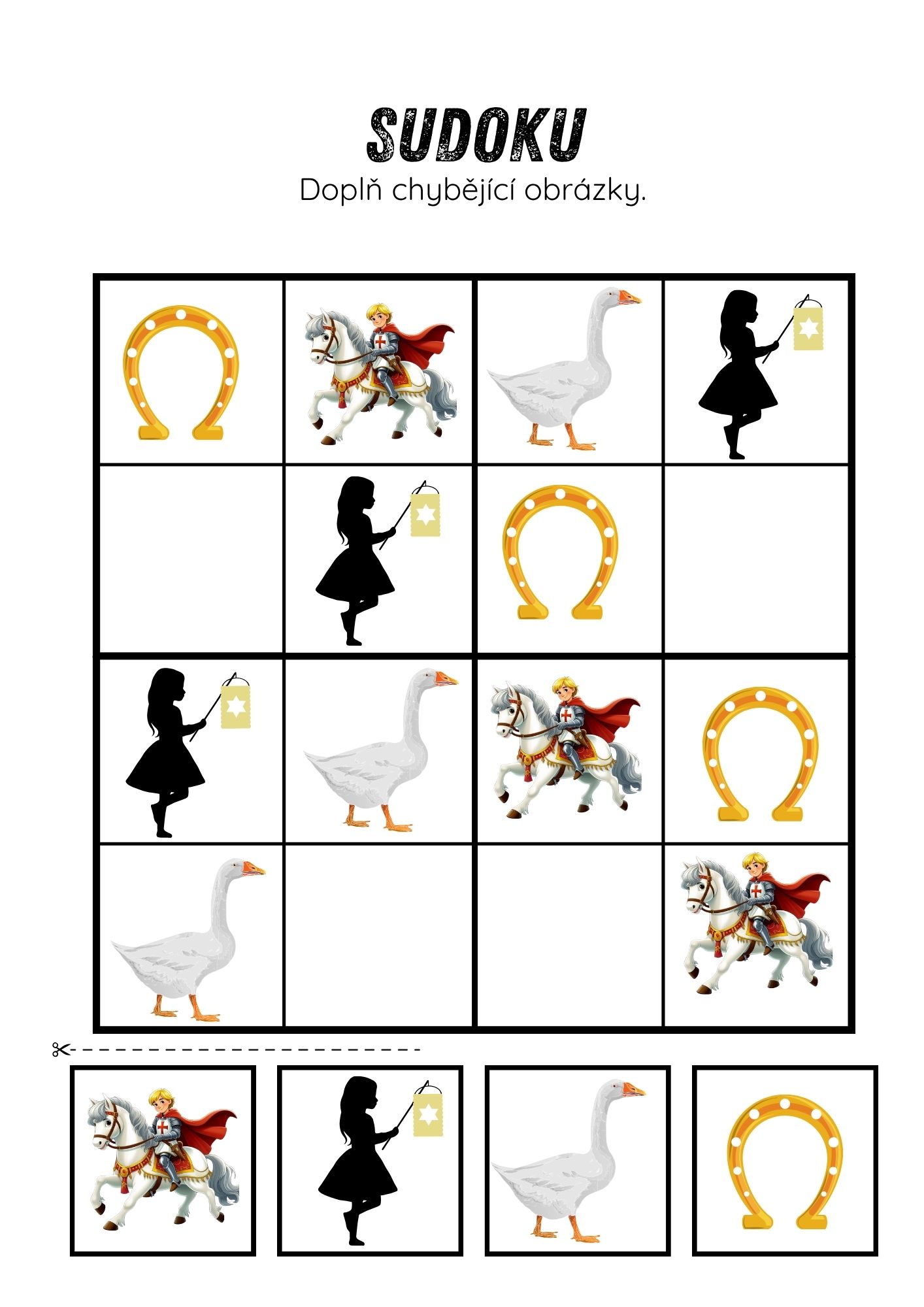 Sudoku, puzzle, třídění podle první hlásky, logika, předmatematické dovednosti, pohybové hry.