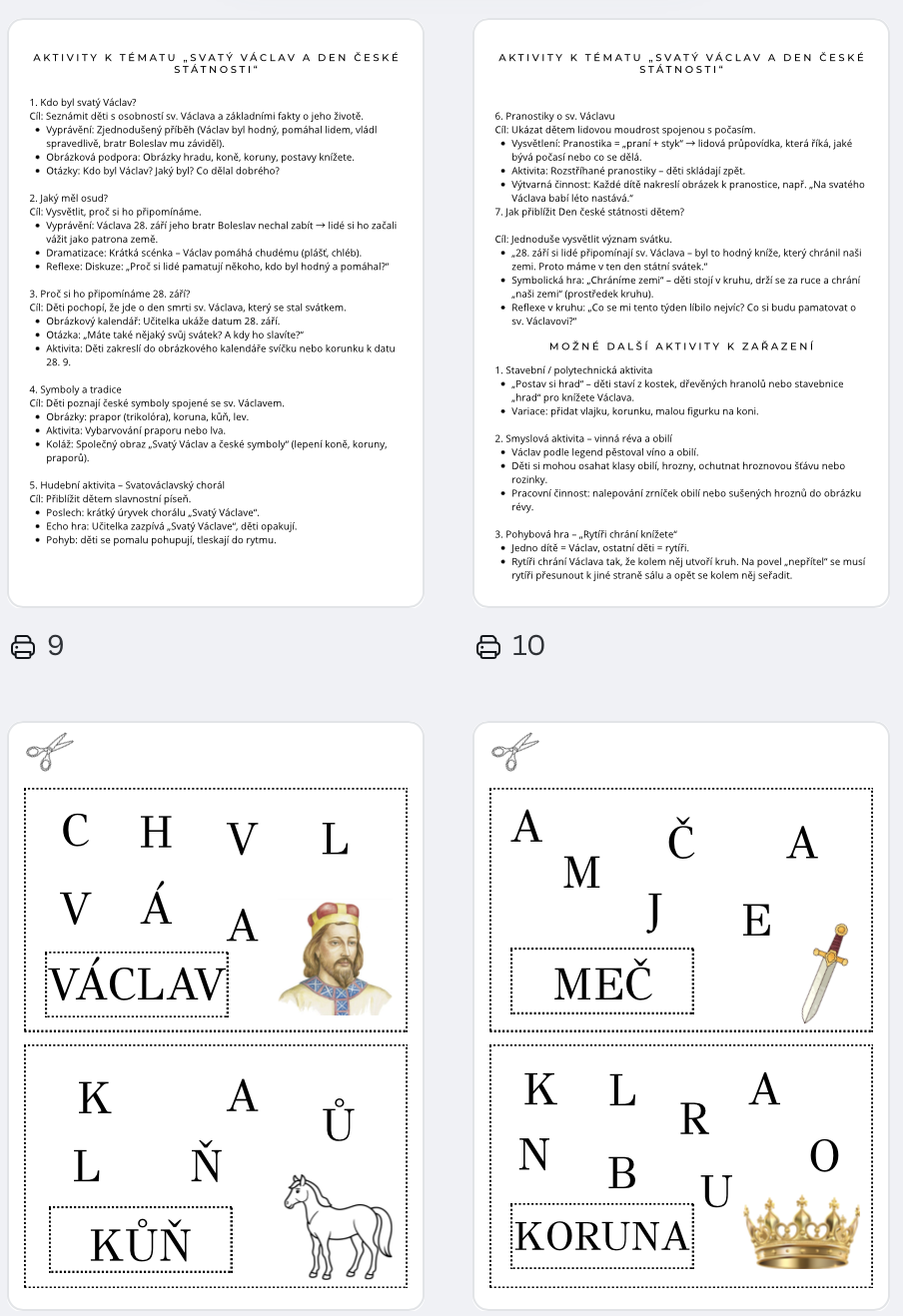 - ✦ Pranostiky a tradice spojené se sv. Václavem – s jednoduchými pracovními listy
