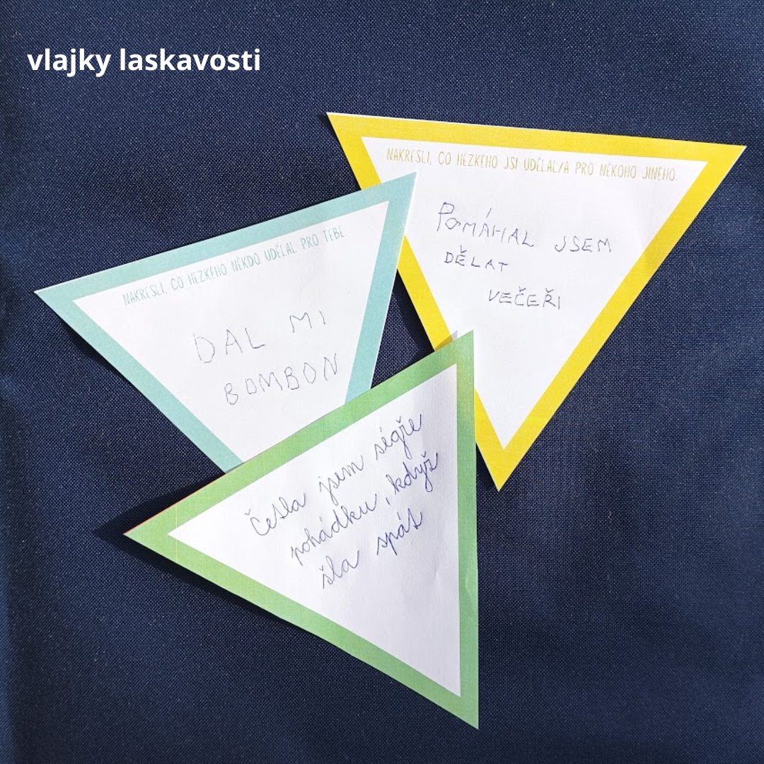 - Vlaječky a vzkazy využijte i pro výzdobu třídy – např. na nástěnku nebo girlandu laskavosti.