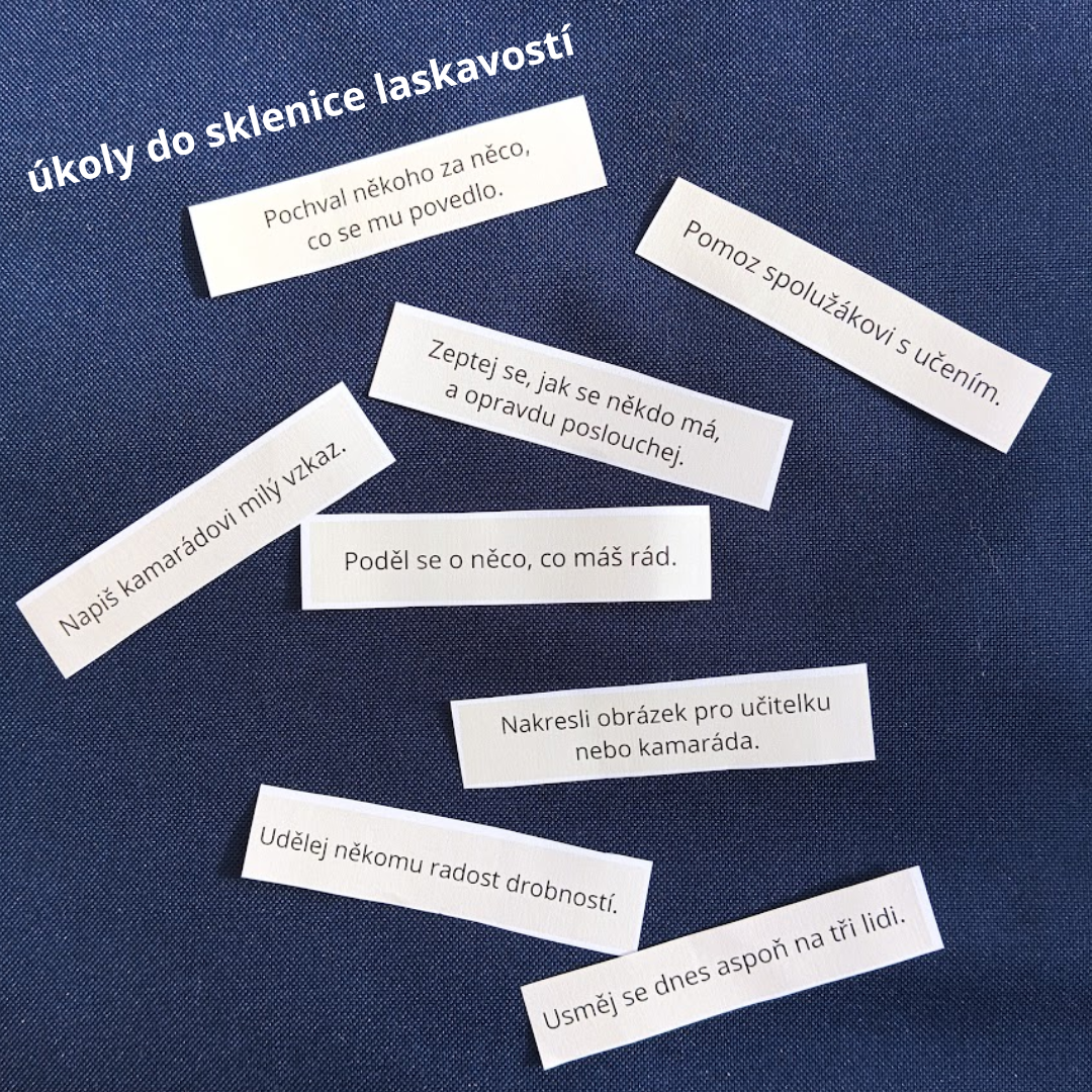 - Úkoly do sklenice – krátké laskavé výzvy k losování.