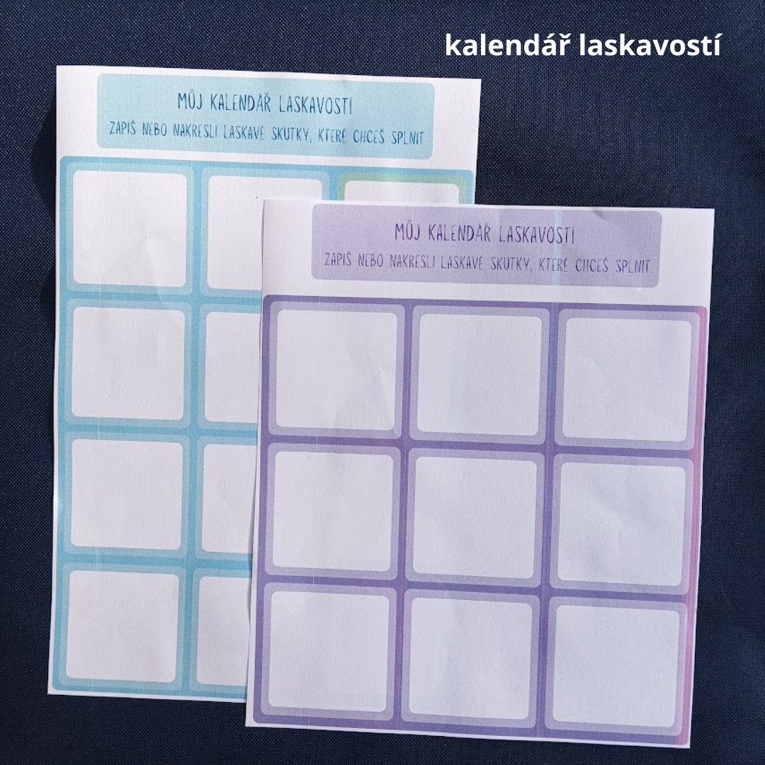 - Kalendář laskavostí – šablona pro zapisování dobrých skutků.