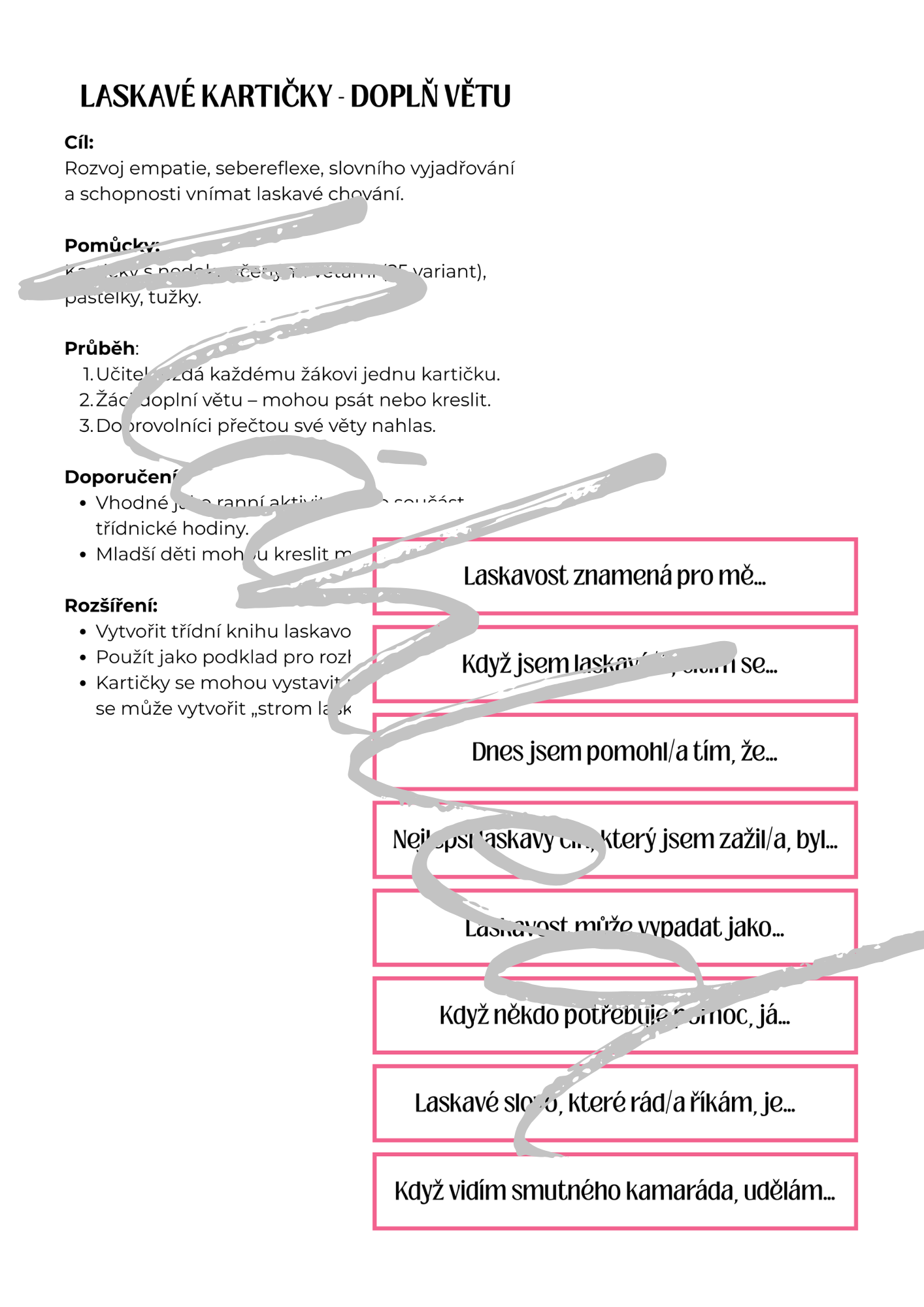 - 24 laskavých kartiček k doplnění vět – ideální pro ranní kruh nebo třídní nástěnku