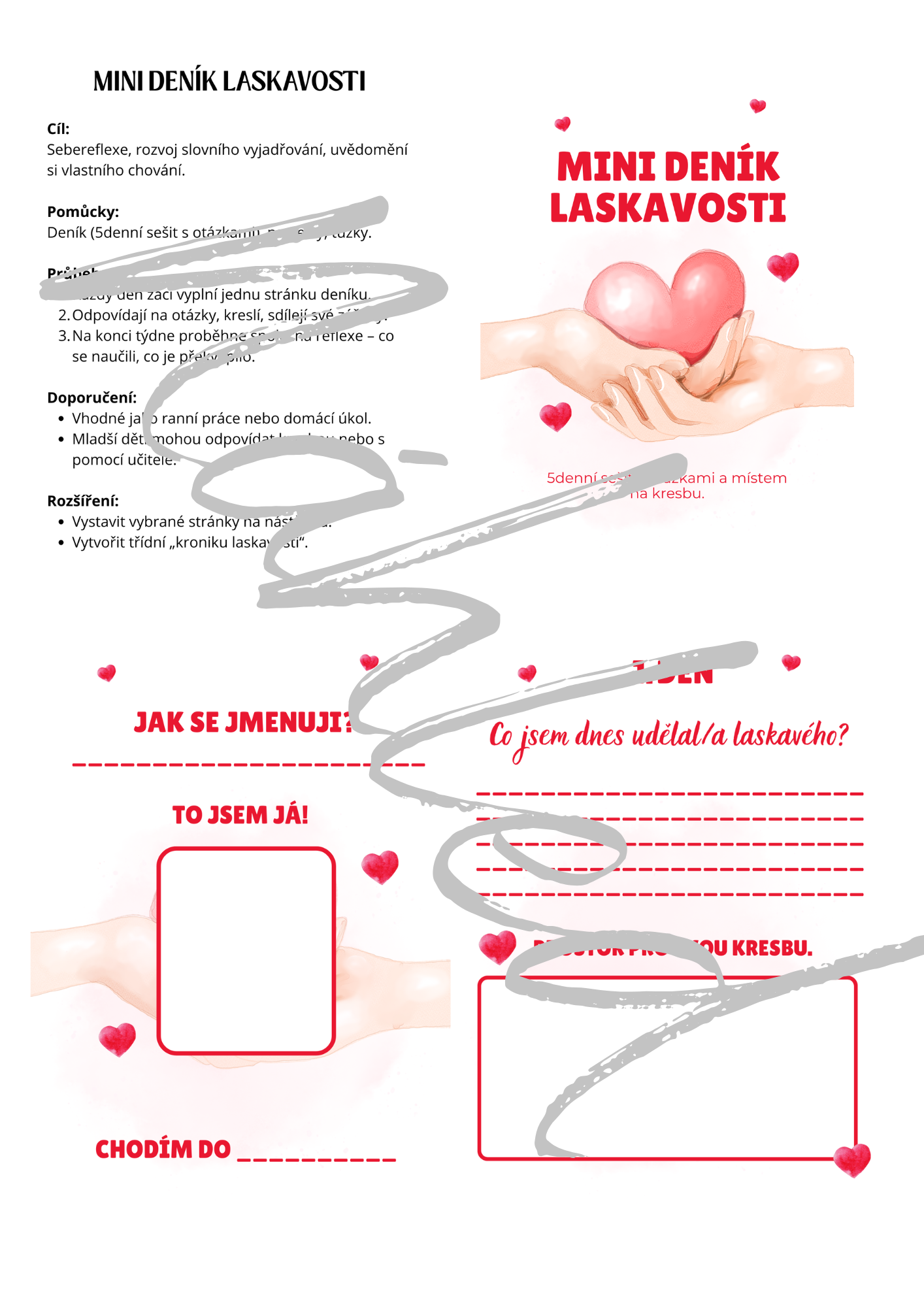 - Mini deník laskavosti – 5denní sešit s otázkami, které vedou děti k sebereflexi a dobrým skutkům