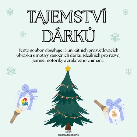 Připravte se na interaktivní a kreativní adventní aktivitu s touto sadou 15 originálních prosvětlovacích karet s motivy vánočních dárků. Tento jedinečný materiál je navržen tak, aby nejen bavil, ale také efektivně rozvíjel jemnou motoriku, zrakové vnímání a soustředění u dětí.