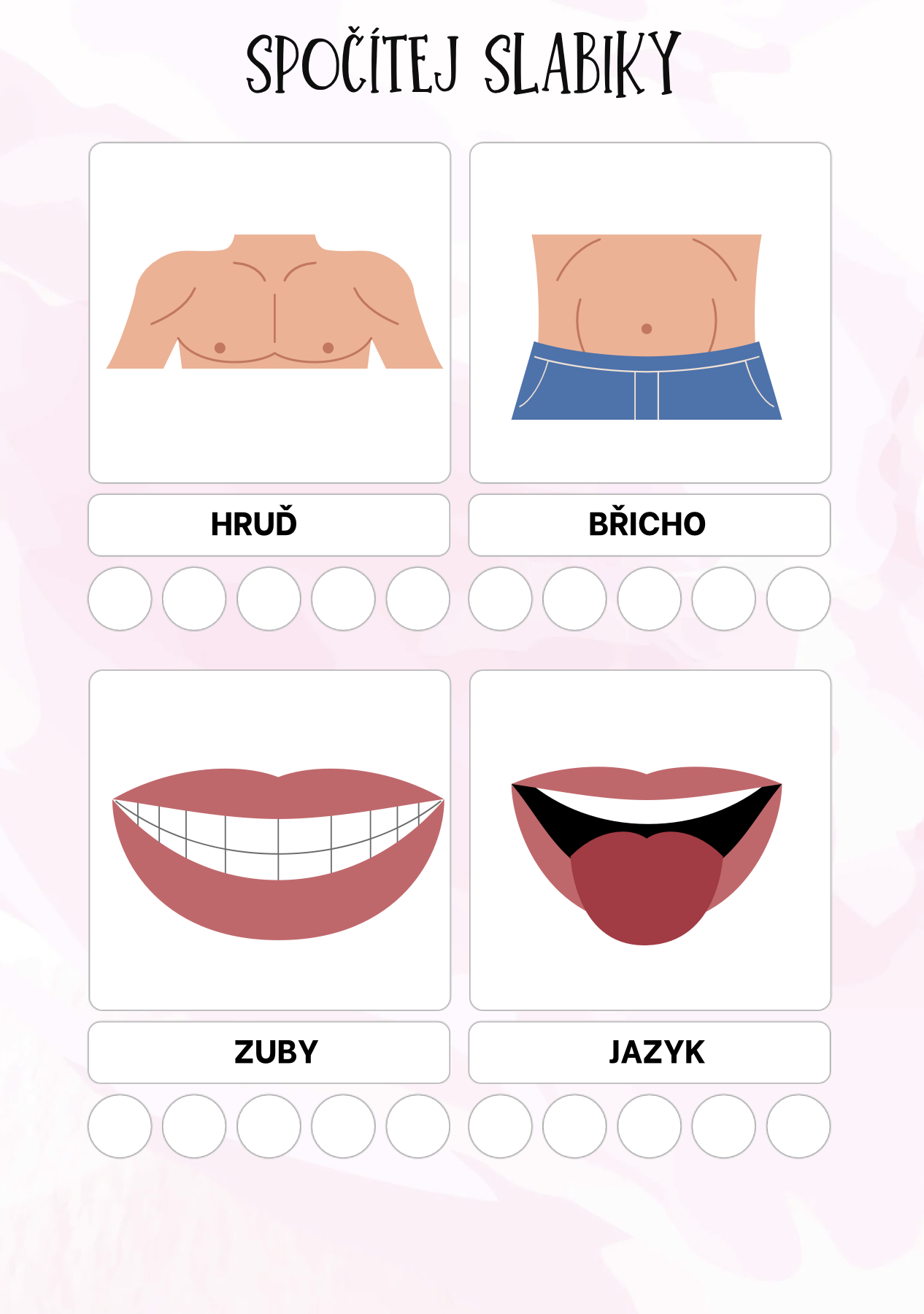 – Slovní hra Moje tělo – sáhni si - 👕 Přiřazování částí těla k oblečení