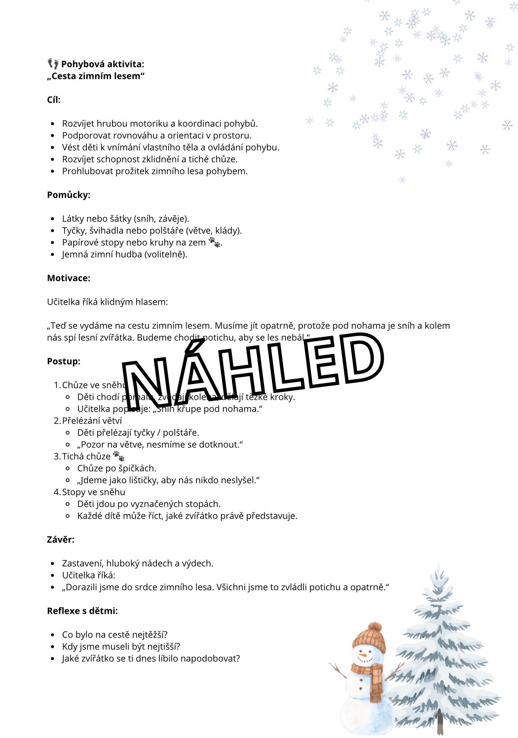 Soubor je vytvořen přímo pro potřeby mateřských škol – přehledně, srozumitelně a s důrazem na prožitek dítěte 🌲❄️