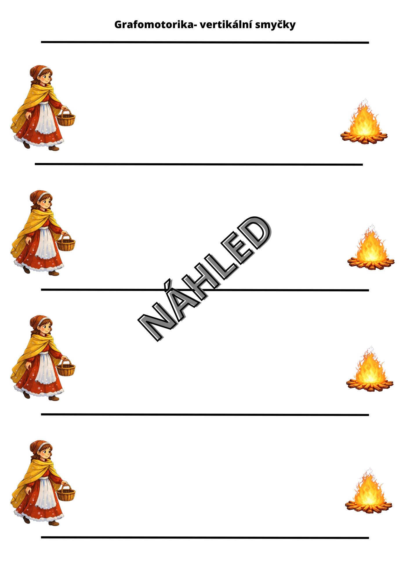 - grafomotorické cvičení – horizontální smyčky, horizontální a vertikální linie