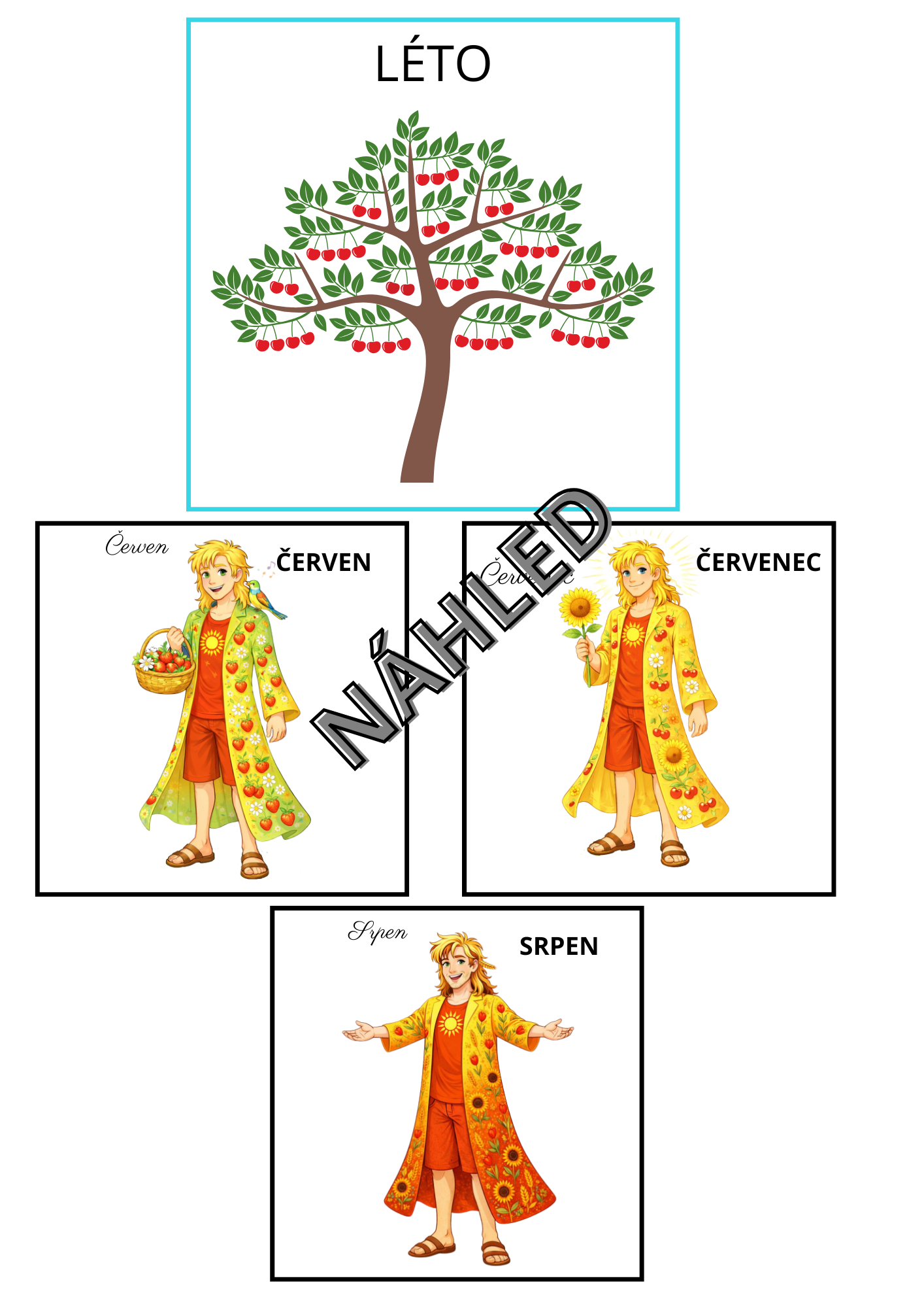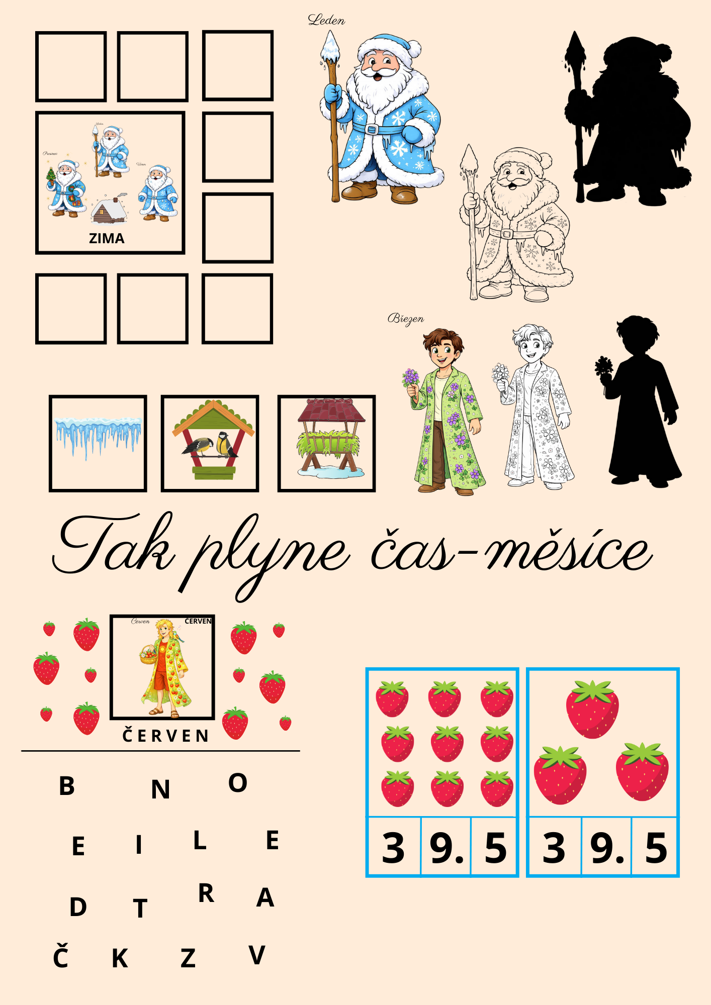 - kartičky s jednotlivými znaky daného ročního období a kartu, ke které děti mohou kartičky přiřazovat