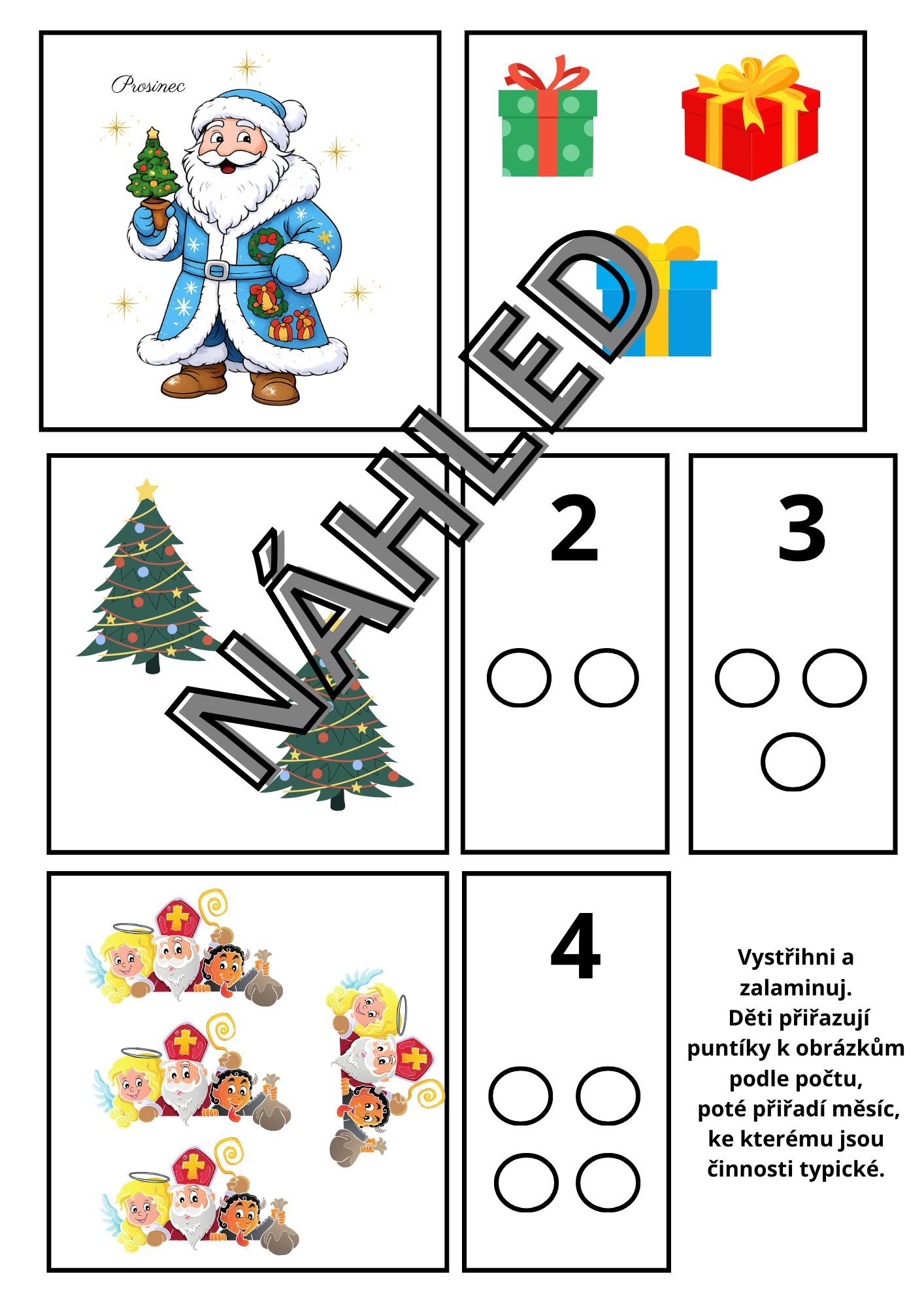 - přiřazování stejného počtu obrázků ke stejnému počtu puntíků, poté přiřazení měsíce