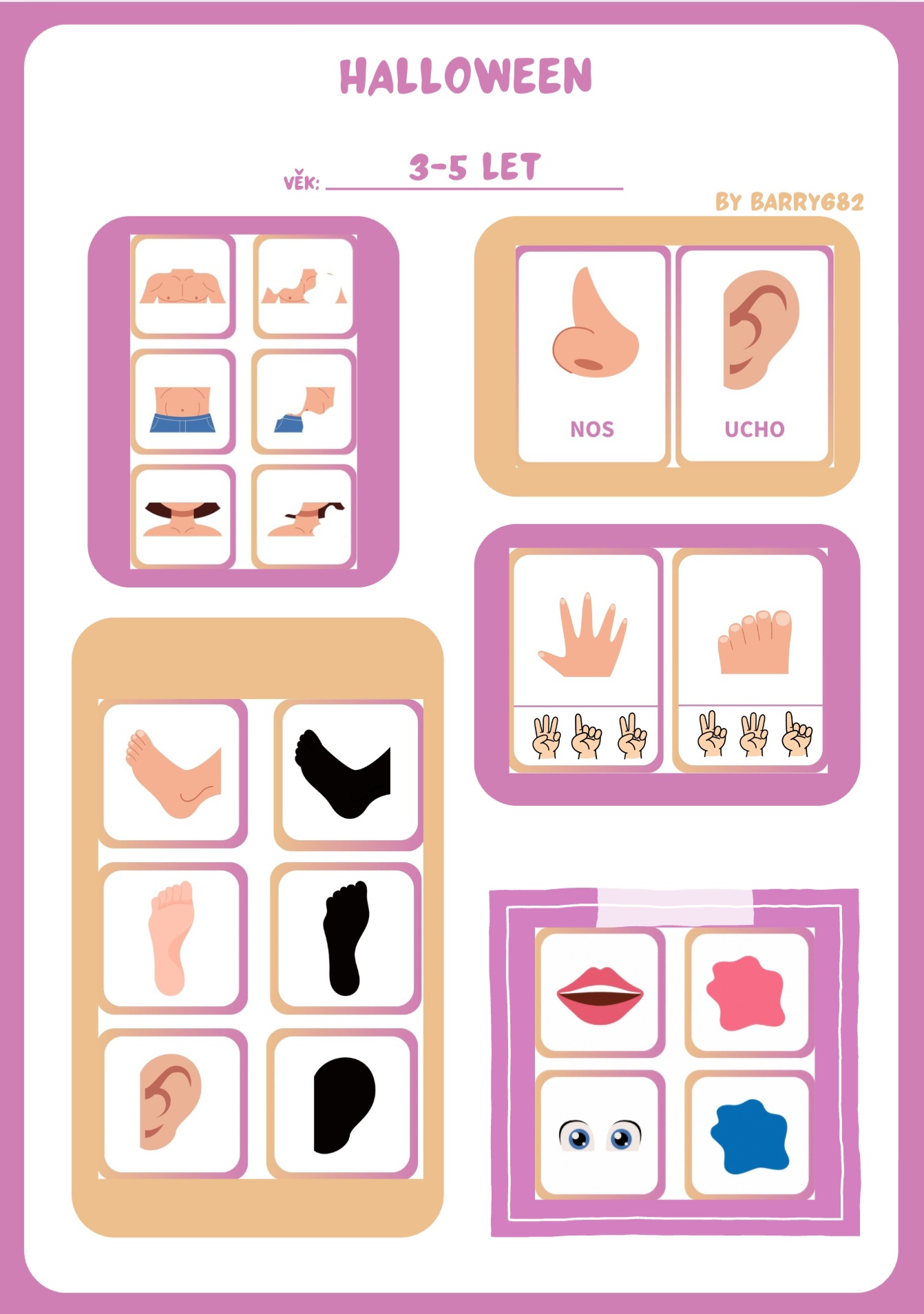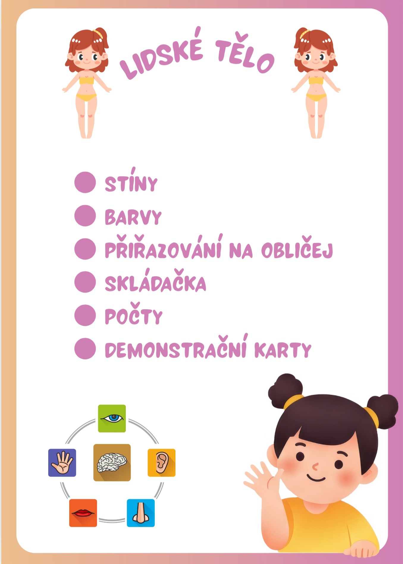 Seznámení dětí s tělem, skládačky, počty na kolíčky, barvy a přiřazování