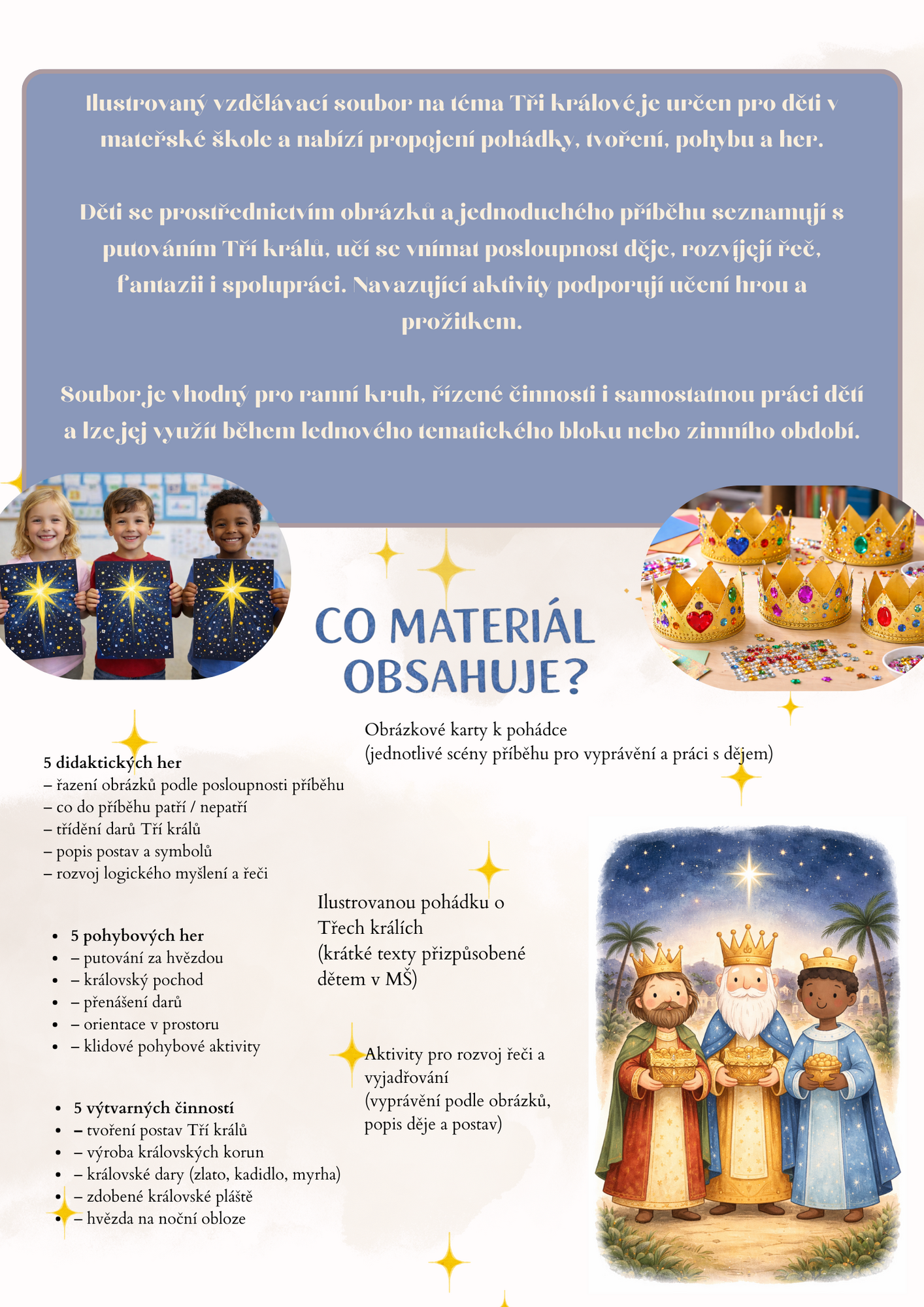 ✨ připravila jsem pro vás ilustrovaný vzdělávací soubor na téma Tři králové, který dětem přiblíží tento krásný zimní příběh hravou a srozumitelnou formou.