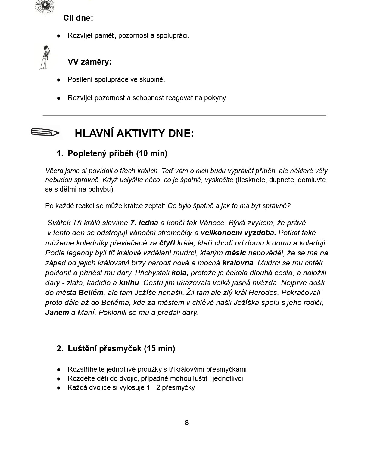 Týdenní plán „Tři králové“ obsahuje ucelený týdenní program aktivit inspirovaných tradicí tří králů. Vhodný hlavně do družiny, ale i pro projektový týden, učení venku apod. Využít můžete jednotlivé dny samostatně nebo jako celý tematický týden.