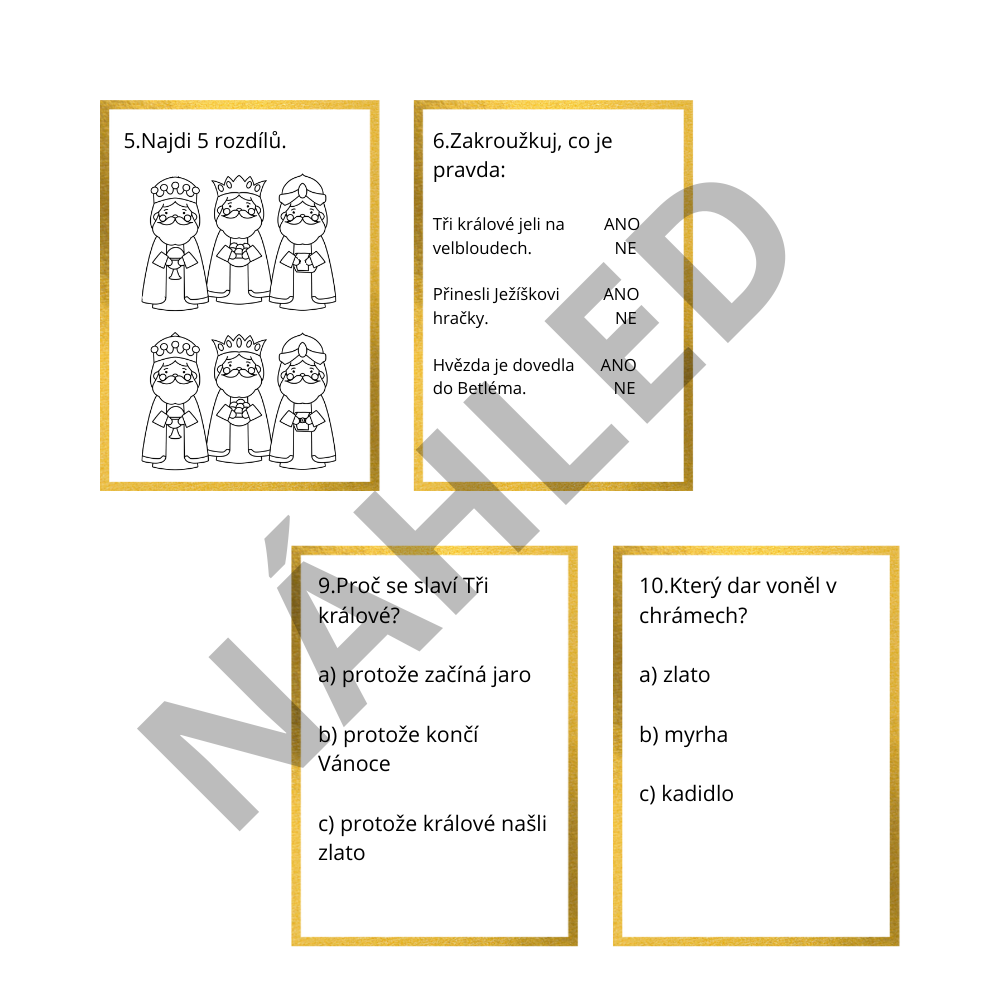 TŘI KRÁLOVÉ - PRACOVNÍ LISTY