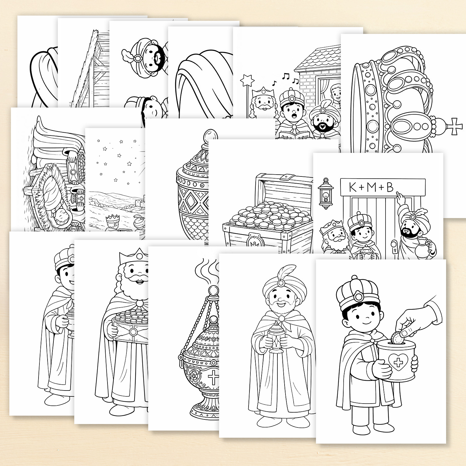 Originální sada 16 omalovánek inspirovaná tradičním příběhem Tří králů.
