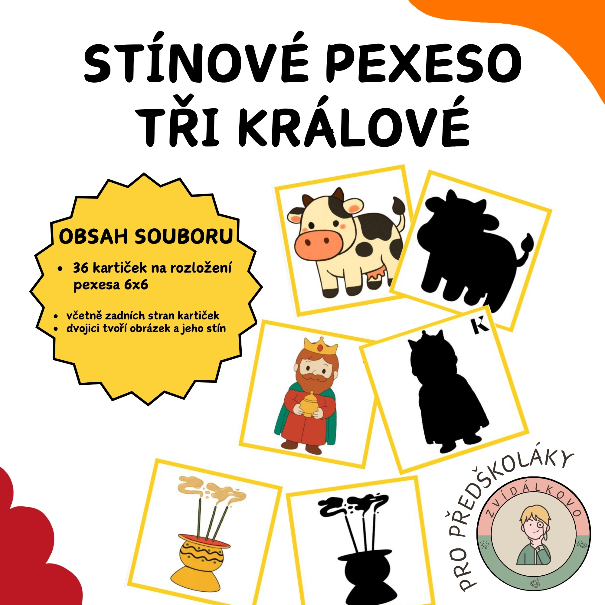 Zvídálkovo Tři králové - Stínové pexeso je hra vhodná na zpestření prvního lednového týdne v mateřské škole.