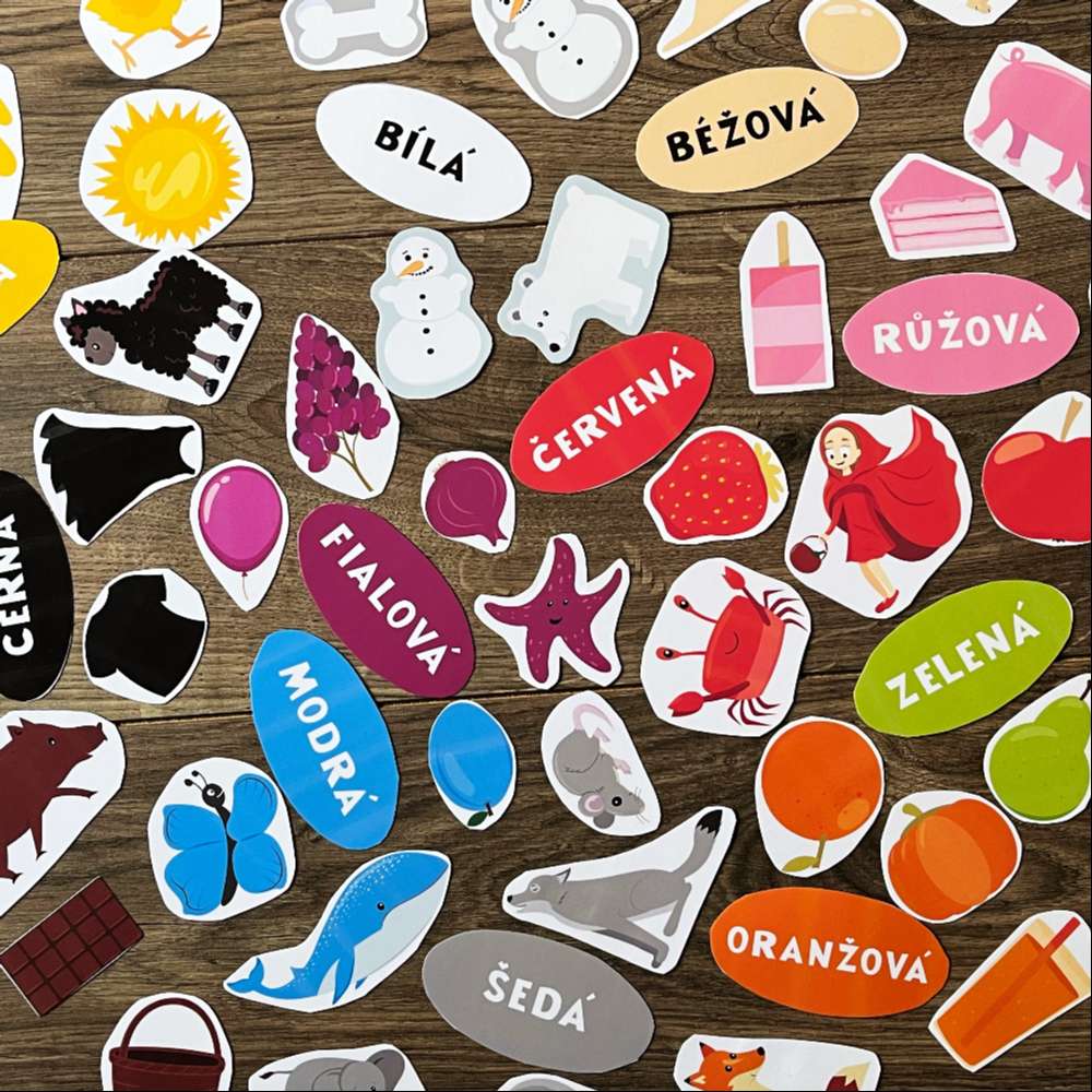 Děti si při aktivitě rozvíjí schopnost rozlišovat a pojmenovávat barvy, slovní zásobu a porozumění, jemnou motoriku při manipulaci s obrázky, logické myšlení a dovednost třídění.