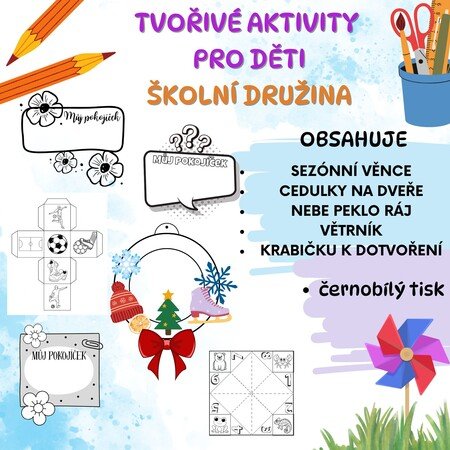 - Stačí vytisknout a dát dětem pastelky a nůžky.