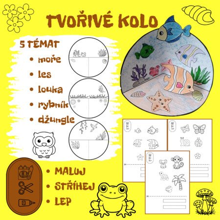Chcete s dětmi tvořit, malovat, stříhat a lepit? Připravila jsem pro vás soubor, ve kterém najdete 5 témat – moře, rybník, džungle, les a louka.