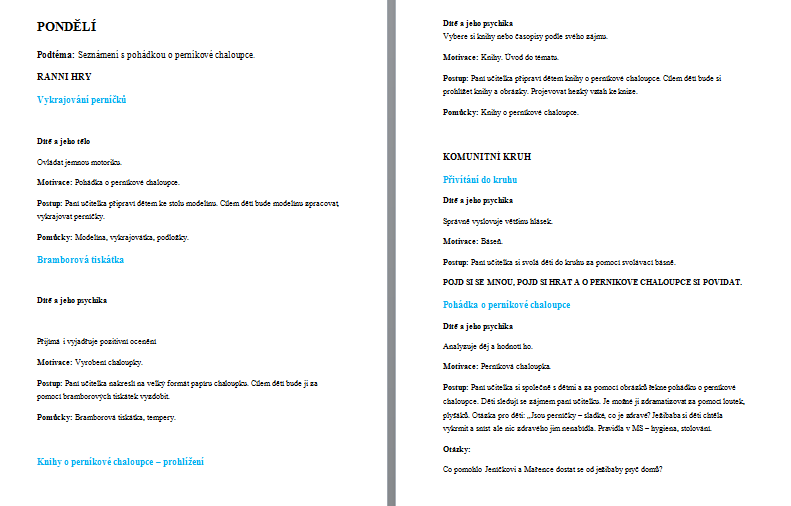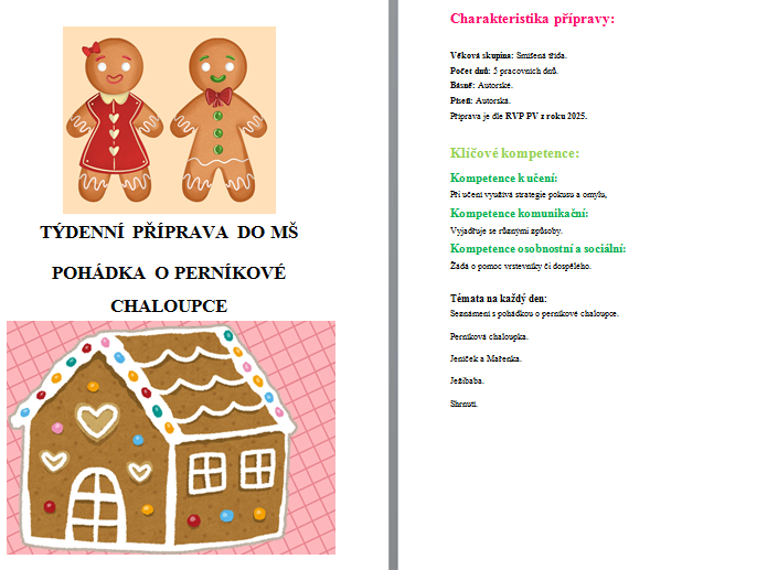 nabízím týdenní přípravu o perníkové chaloupce.