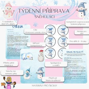 Tento materiál obsahuje různé aktivity zaměřené na rozvoj jemné a hrubé motoriky, podporu čtenářských dovedností a interakci mezi dětmi. Děti se naučí, jak zacházet s knihou, listovat a vyprávět příběhy. Součástí přípravy jsou také básničky, hry s knihami a tvořivé činnosti, které děti vtáhnou do světa knih a literatury.