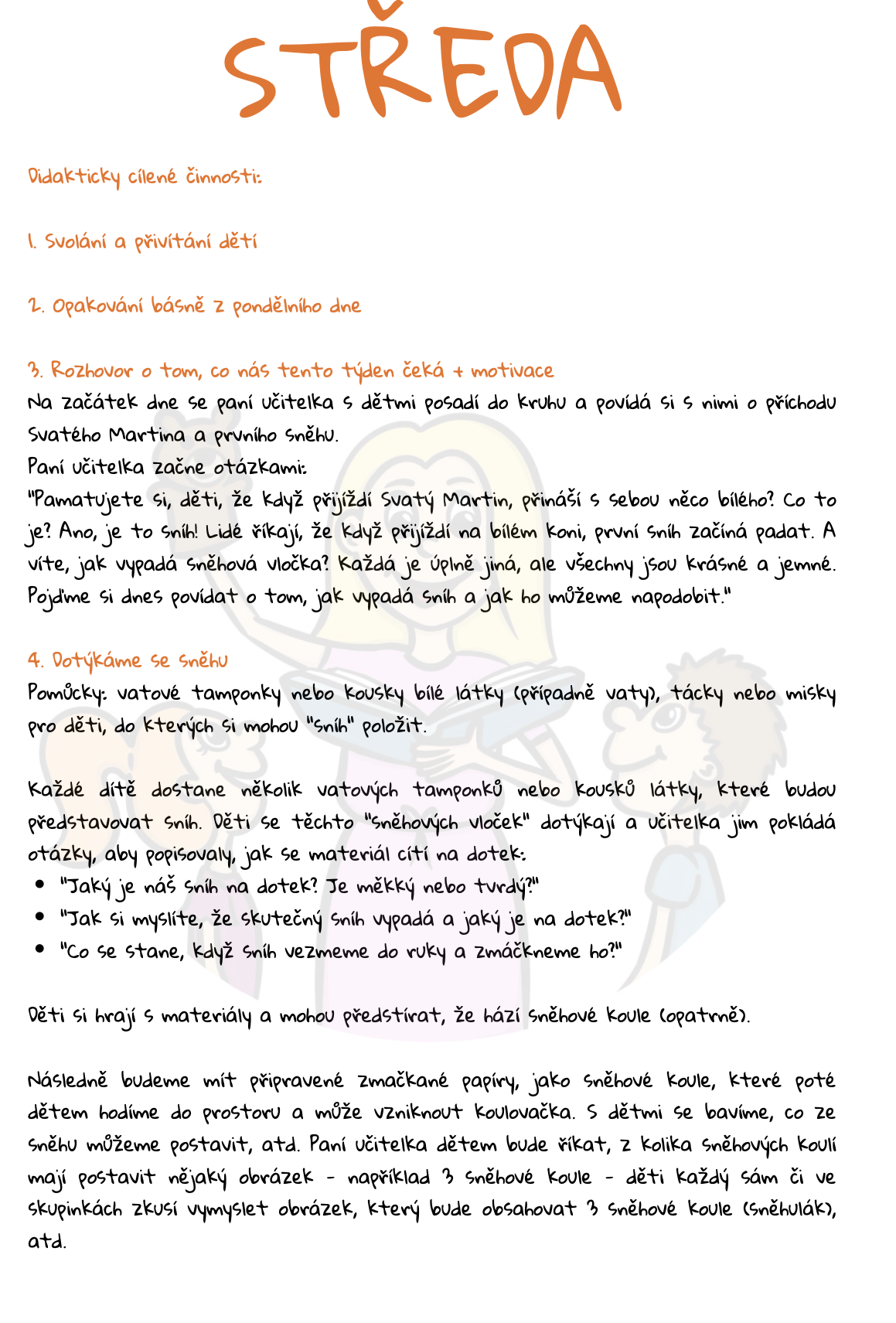 Zapojení všech smyslů: Děti budou během týdne zkoušet různé aktivity – od tvoření, přes pohybové hry až po hudební doprovod k písním o Svatém Martinovi.