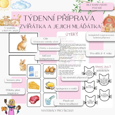 Příprava je plně v souladu s RVP PV 2025 a podporuje přirozené učení prostřednictvím pohybu, smyslového poznávání a tvoření.