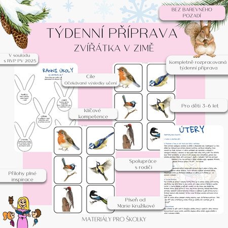 Příprava také obsahuje připravené šablony a materiály, které stačí vytisknout a ihned použít. Tento materiál poskytuje učitelům kompletní nástroj, jak děti seznámit se zimním prostředím a zvířaty, které v něm žijí. Děti se učí o přírodě zábavným a interaktivním způsobem, zatímco si osvojují nové dovednosti a poznatky.