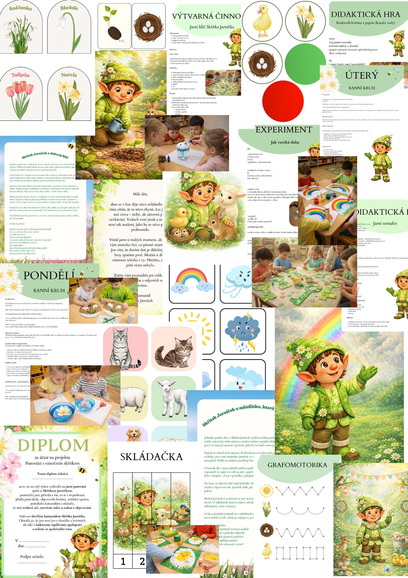 Putování se skřítkem Jarníčkem je ucelený týdenní projekt pro mateřské školy, který děti citlivě a hravou formou provede proměnami jara. Společně se skřítkem Jarníčkem budou děti pozorovat, naslouchat, tvořit, hýbat se i přemýšlet – a přitom si nenápadně osvojí nové poznatky o světě kolem sebe.