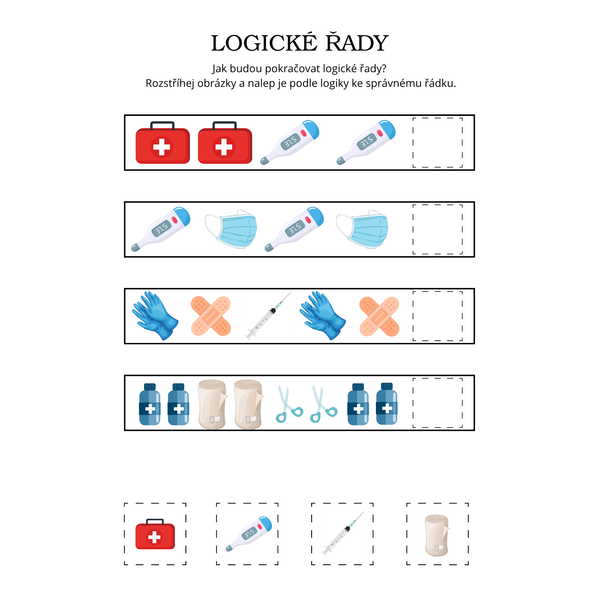 - Rozvoj motoriky: Bohatá sada pracovních listů, skládaček a kolíčkování, které zábavnou formou procvičují jemnou motoriku, zrakové vnímání a logické myšlení – to vše s tematikou uzdravování a medicíny.