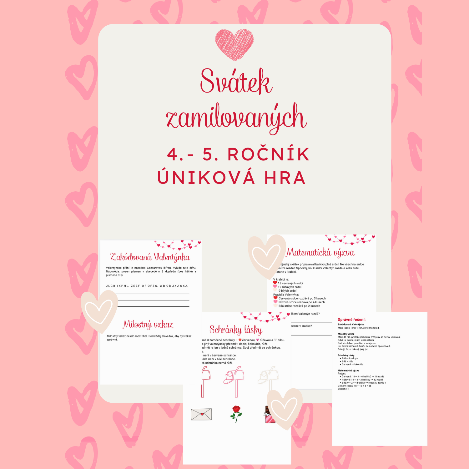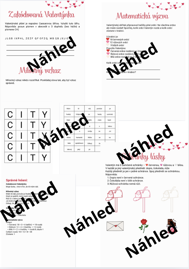 Materiál obsahuje únikovou hru na téma svátek zamilovaných.
