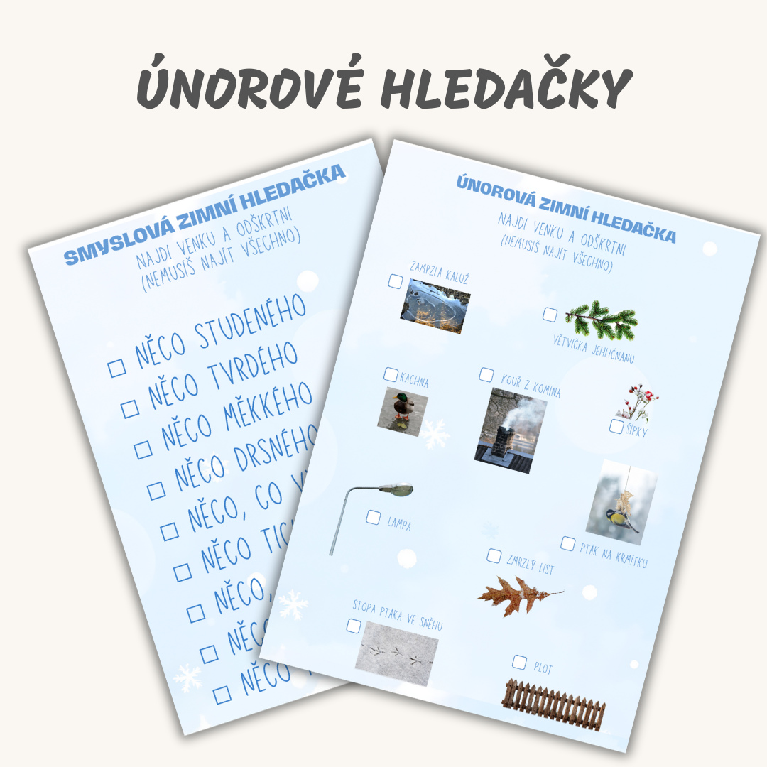 - Únorová zimní hledačka - 2 varianty - zimní (se sněhem a ledem) a smyslová (využitelná kdykoliv, bez ohledu na počasí)