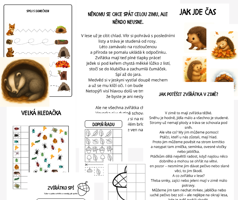 Podívejte se, děti, venku už fouká chladný vítr a na zemi šustí barevné listí. Léto se s námi rozloučilo a příroda se pomalu chystá na zimu. A víte, kdo má teď napilno? Zvířátka!