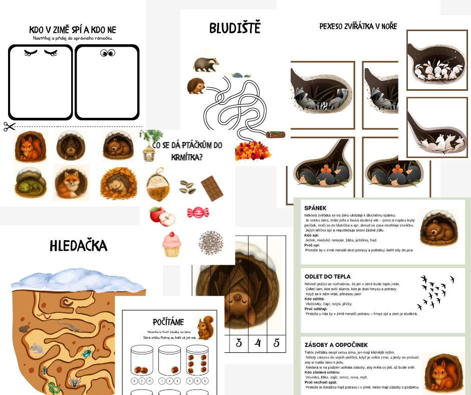 Každé z nich se na zimu připravuje po svém. Někdo si schovává zásoby oříšků, jiný hledá teplý pelíšek a další se pomalu ukládá ke spánku, který potrvá až do jara.