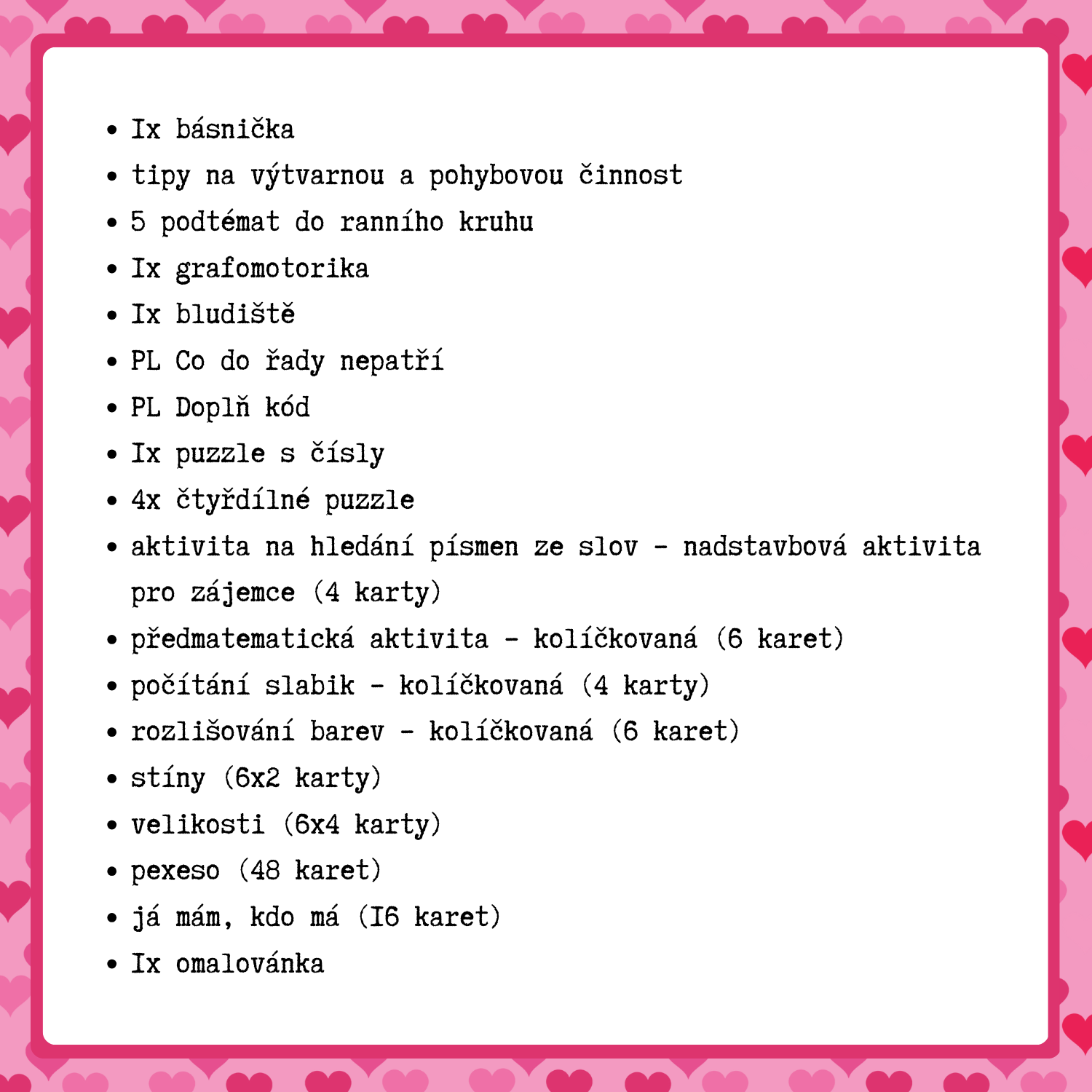 Hledáte promyšlený, hravý a pestrý materiál, který děti nejen zabaví, ale také je něco naučí? Přináším vám soubor aktivit na téma Valentýn, který vám ušetří čas a usnadní práci.