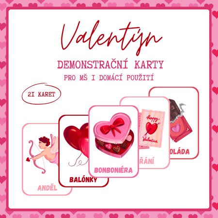 Materiál obsahuje 21 demonstračních karet s barevnými obrázky a popisky.