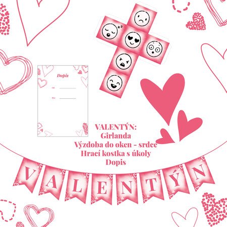 Girlanda s nápisem Valentýn - Velikost A4 - s okraji 10mm